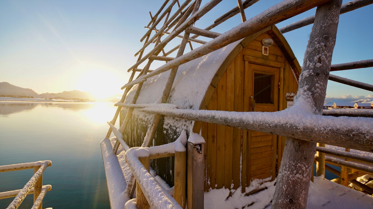Rorbu original e aconchegante com sauna e banheira de hidromassagem