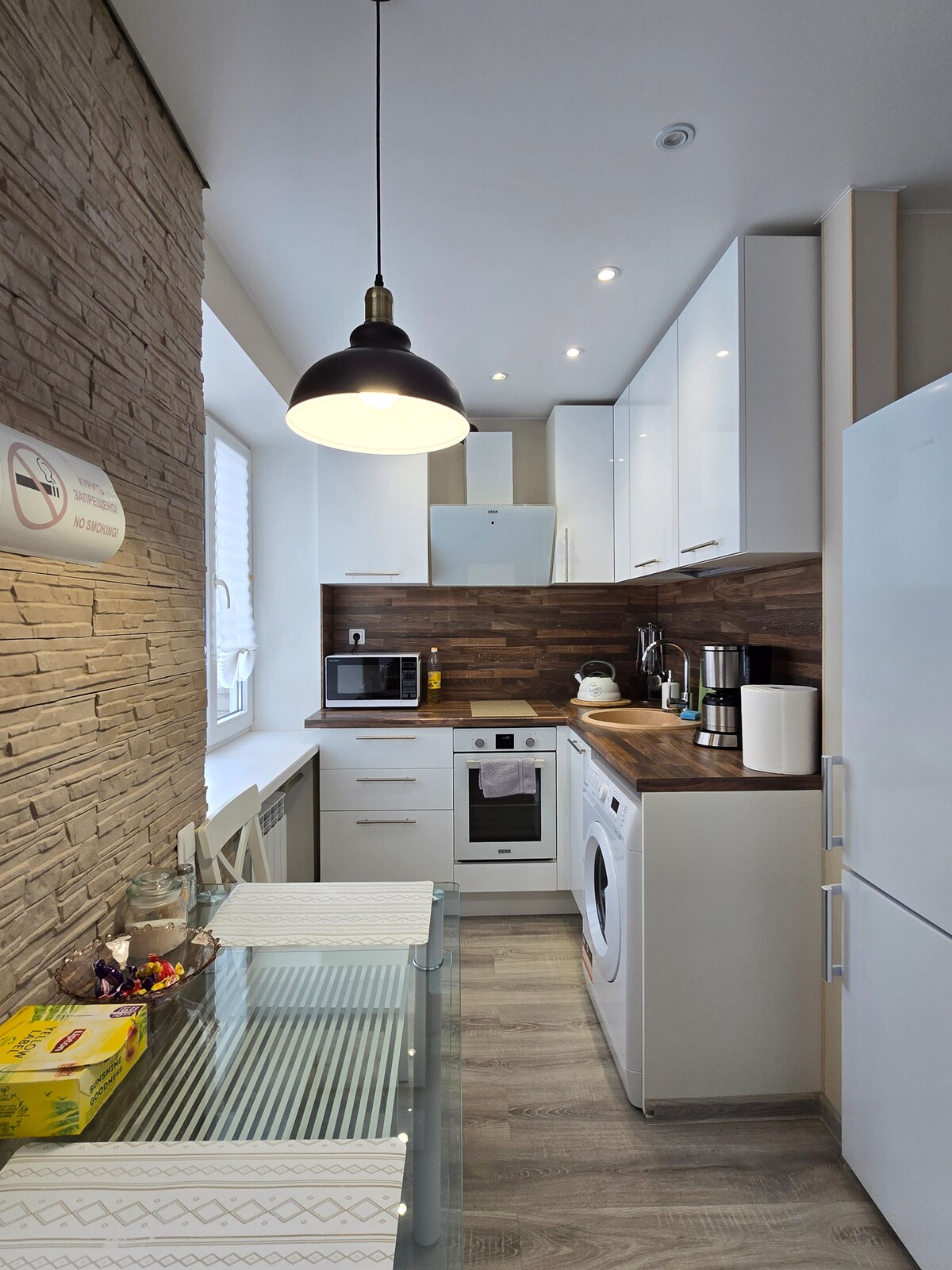 Um apartamento acolhedor com renovação recente, mobiliário novo e eletrodomésticos modernos, localizado a apenas 300 metros da Faculdade de Narva e da Praça da Câmara Municipal, e a 800 metros do posto de controlo fronteiriço. O apartamento tem uma cozinha separada com tudo o que precisa para cozinhar, bem como uma cama de casal confortável (160×200 cm) com um colchão novo e roupa de cama de alta qualidade.