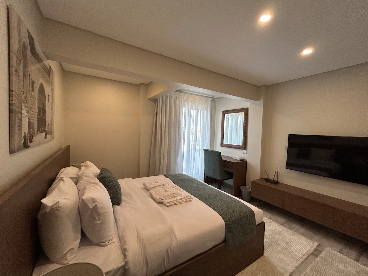 Desfrute de luxo na nossa ampla Suíte Presidencial com três áreas de estar, uma grande mesa de jantar e três quartos, incluindo uma suíte master com uma casa de banho luxuosa. Beneficie de duas entradas, segurança reforçada e uma cozinha totalmente equipada. Perfeitamente localizado a apenas 5 minutos a pé do City Star Mall e a 2 minutos do City Centre Mall. Inclui Wi-Fi de alta velocidade, check-in personalizado e acesso a uma piscina exterior. Ideal para relaxamento e entretenimento, com uma cama extra disponível mediante pedido.