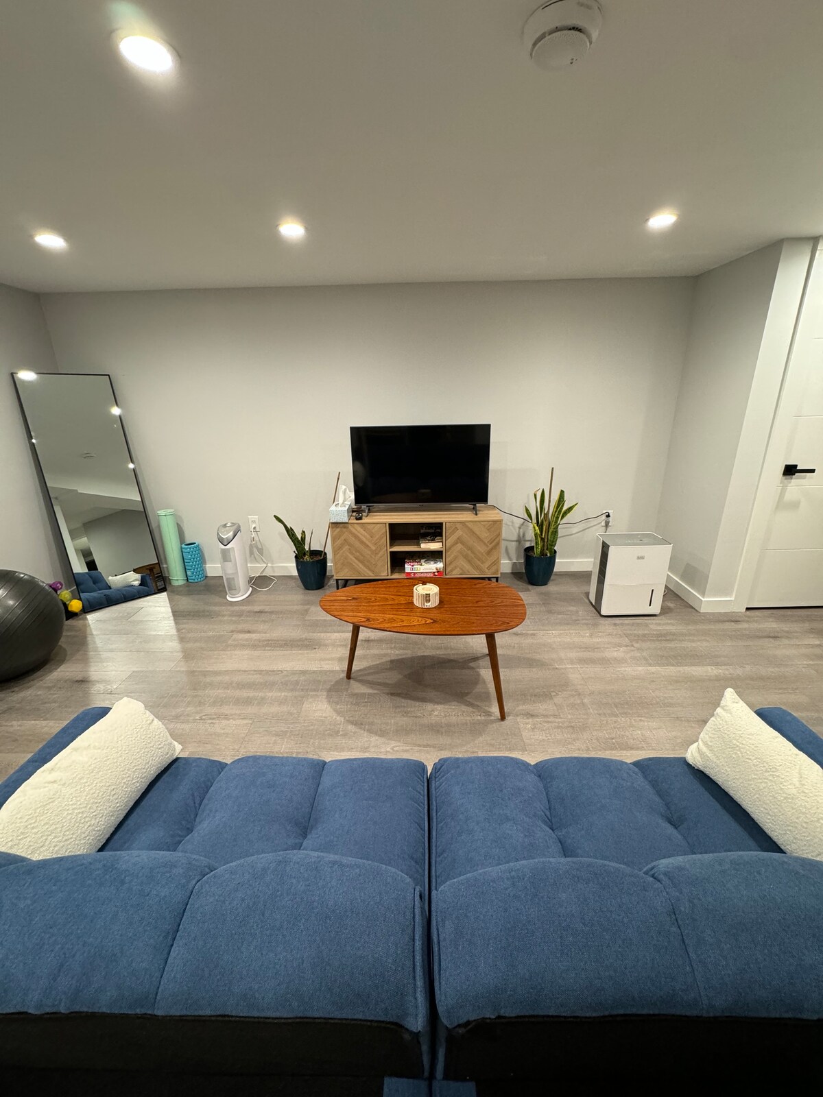 Bem-vindo ao nosso novo estúdio no porão, cuidadosamente projetado para seu conforto e conveniência. Relaxe em uma cama queen-size depois de um dia de exploração ou converta o(s) sofá(s) de pelúcia em uma cama para hóspedes adicionais. O recanto dedicado ao local de trabalho é ideal para realizar tarefas ou simplesmente navegar na web. Entre no banheiro elegante, completo com pisos aquecidos, adicionando um toque de luxo à sua estadia. Experimente a vida moderna e relaxamento aconchegante em um espaço — reserve agora para uma estadia inesquecível!