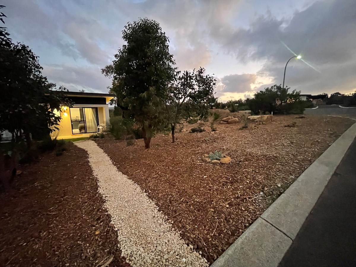 Esta vila elegante e tranquila permite que você e seu bebê de pele* tenham espaço para relaxar, descansar e rejuvenescer. Toques de luxo, incluindo lençóis de bambu 1000TC, cama king deluxe, TV de 64 polegadas, lounge de designer e sofá-cama ao ar livre com vista para o jardim para garantir que você se sinta tão relaxado quanto você é cuidado. Desfrute da reclusão, sons da vida selvagem e espaço verde, a poucos minutos das comodidades de Dunsborough, praias intocadas para cães e surf de qualidade, em uma região abençoada com vinícolas 5 estrelas, restaurantes, galerias e produtos locais excepcionais.