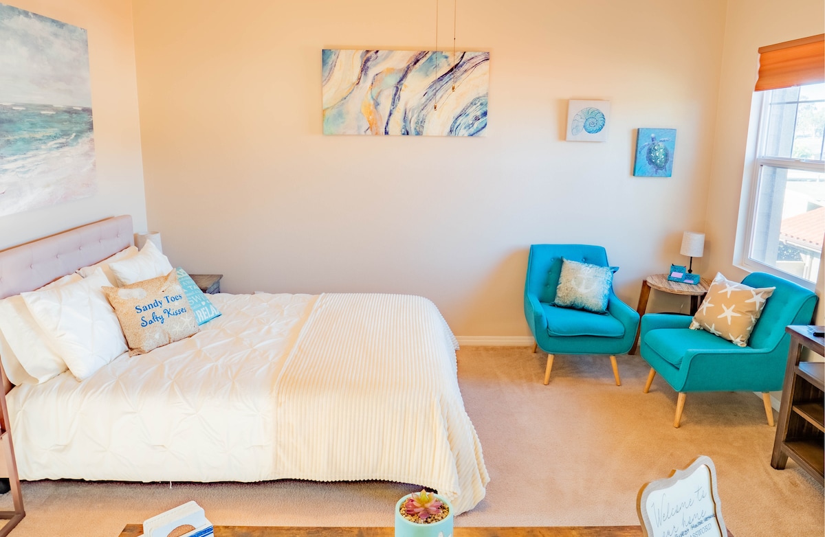 Licença #: 2354 Bem-vindo (a) ao nosso acolhedor estúdio com tema de praia! Relaxe e descontraia com uma cama queen confortável, cozinha completa, casa de banho privativa, ar central, ventoinha de teto e uma televisão inteligente de 50"com Hulu e Amazon Prime. Desfrute da área de estar acolhedora, perfeita para ler ou beber café. Abastecemos o Keurig com cápsulas, creme e petiscos para si. Se precisar de alguma coisa durante a sua estadia, esteja à vontade para entrar em contacto. Aproveite a sua estadia!