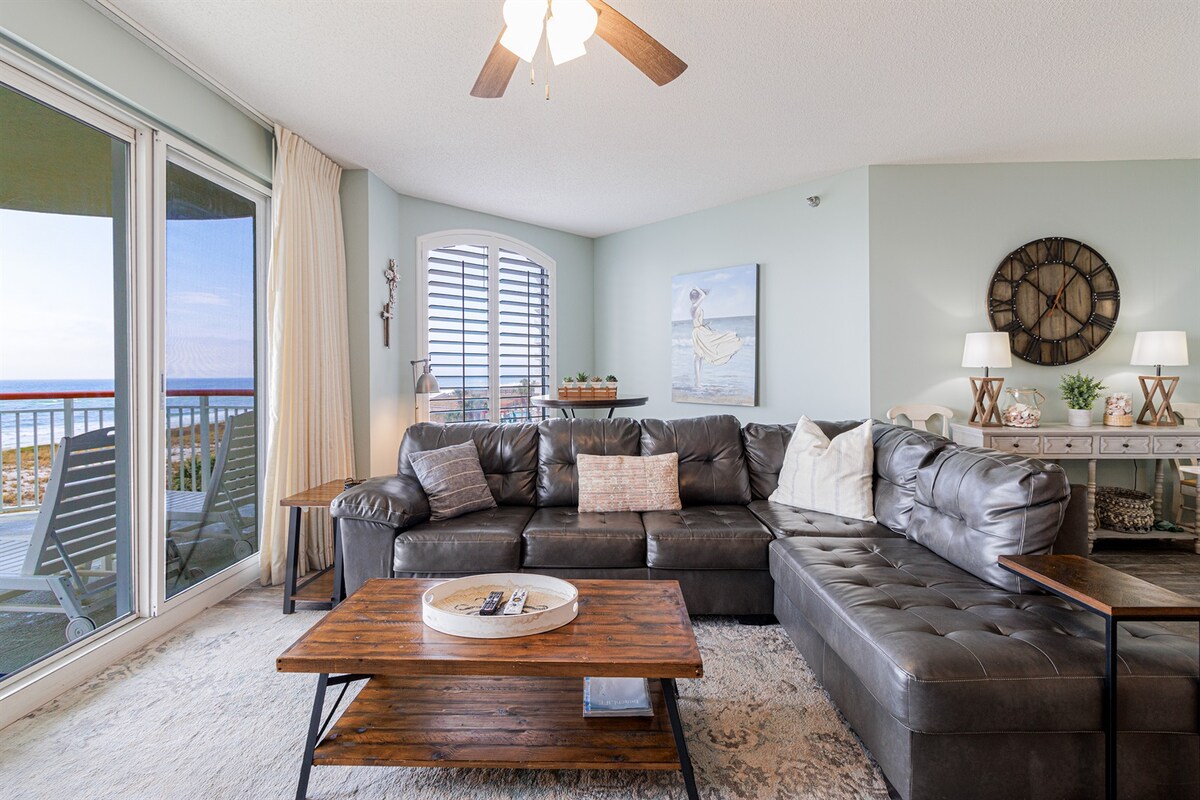 Decorado com cores de designer relaxantes com um ambiente costeiro, este espaçoso condomínio de um quarto e dois banheiros tem vistas deslumbrantes para o Golfo, eletrodomésticos atualizados e acomoda seis pessoas. A unidade tem um quarto com uma confortável cama king size, televisão de ecrã plano e casa de banho privativa com chuveiro/banheira; dois beliches numa alcova de corredor; uma segunda casa de banho com chuveiro; e cozinha de conceito aberto com todos os novos eletrodomésticos de aço inoxidável de tamanho completo; área de jantar e sala de estar com um sofá-cama.