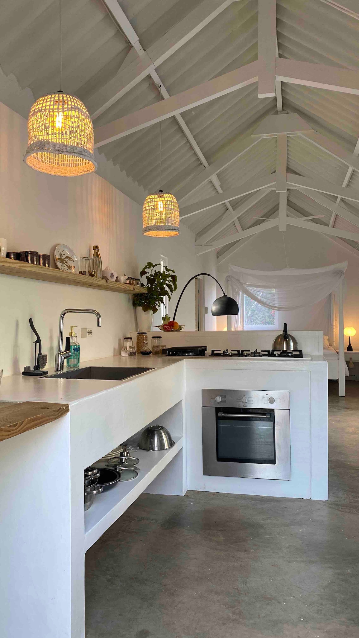 Desfrute da paz e tranquilidade da natureza nesta encantadora pousada com uma vista incrível sobre a costa leste intocada de Bonaire. Iguanas e cabras passando pelo seu quintal. Apenas 12 min. do centro da cidade de Kralendijk. A pousada contém um banheiro moderno e cozinha totalmente equipada com máquina de lavar louça. Há uma pequena piscina de onde você pode desfrutar da vista maravilhosa. E tanques de enxágue para o seu equipamento de mergulho. O Wi-Fi é rápido e confiável e adequado para trabalhar a partir da casa de hóspedes