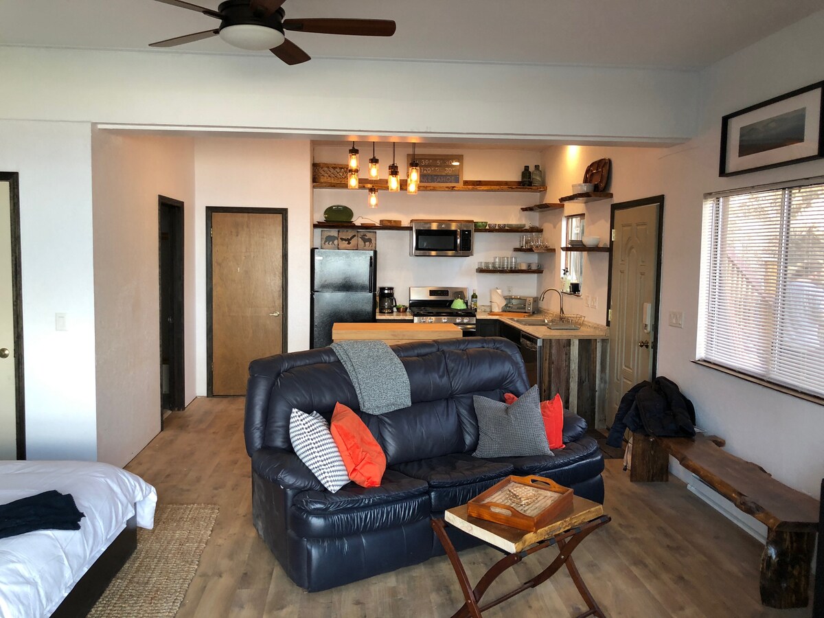 VISTAS ÚNICAS! Recém-atualizado para estilo e conforto. Vistas deslumbrantes da Sierra Nevada! Nascer do sol inacreditável! A poucos minutos do teleférico de esqui Stagecoach e do Lago Tahoe - Desfrute de tudo o que Tahoe tem a oferecer nesta casa recentemente renovada. Lareira acolhedora, cozinha personalizada completa, Internet rápida com serviços de streaming de TV. Este estúdio incrível com 120 pés quadrados adicionais de um deck envolvente é perfeito para uma escapada romântica ou uma pequena família e acomoda confortavelmente 4 pessoas. Uma estadia verdadeiramente mágica!