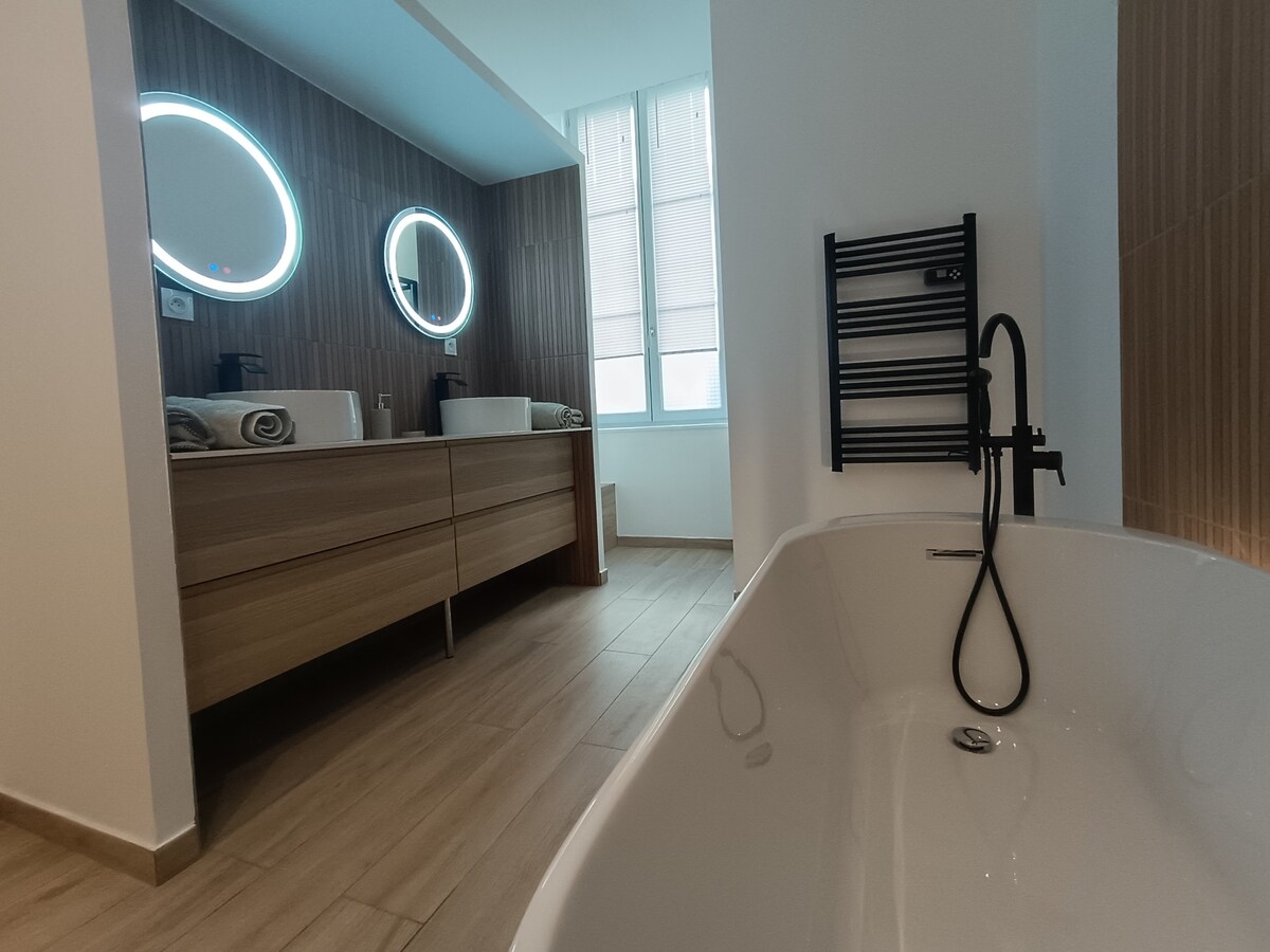 Comfortable, wellness-focused home, ideal for family or business stays. Accommodates up to 4 guests and features two bedrooms, a living room, a fully equipped kitchen, and a Bali-style bathroom with a relaxing atmosphere. Smart TVs in the living room and bedrooms. Terrace and secure courtyard for vehicle parking. Fully fenced property, ideal for pets. Spa jacuzzi available from April 1st to October 31st (winterized outside this period). Independent access and full autonomy.