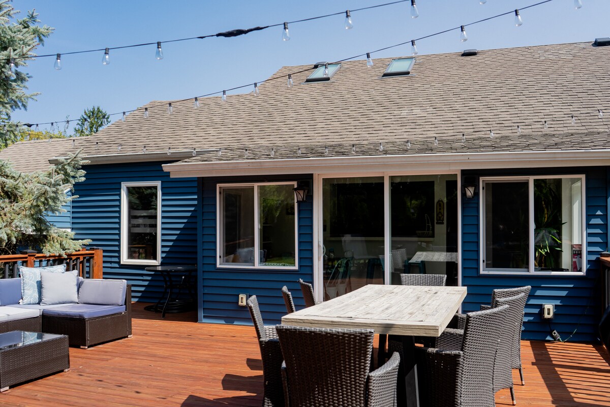 Aconchegante casa de meados do século no lago Michigan e dunas com banheira de hidromassagem