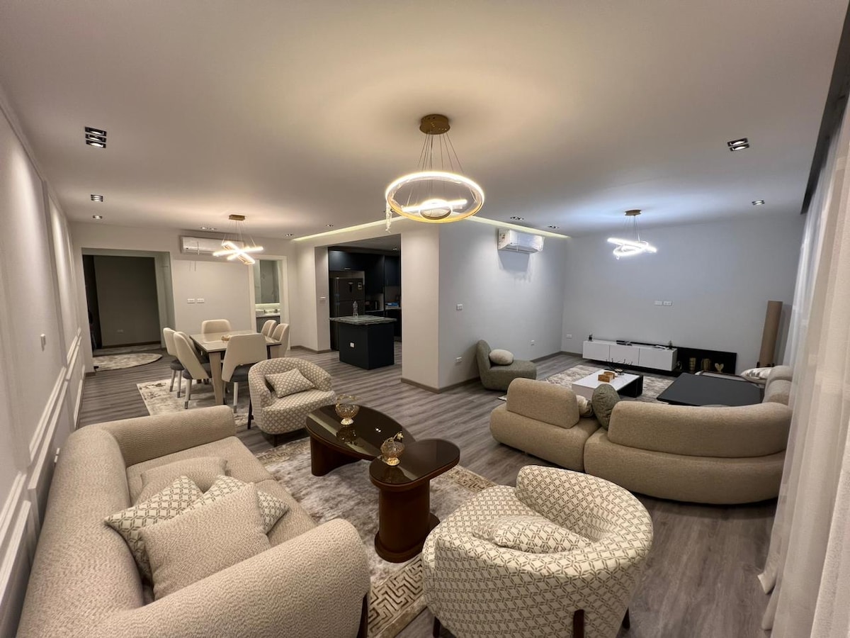 Fantástico apartamento totalmente mobiliado com 3 quartos grandes com cama de casal, localizado em New Cairo, a 25 metros do Cairo Int. Aeroporto em uma bela vila com entrada privativa em uma área bastante prestigiada, onde os hóspedes podem relaxar e desfrutar da atmosfera Egípcia. Tem uma espaçosa e bela área de estar, cozinha totalmente equipada, varanda grande com vista para a paisagem, um quarto principal com cama tamanho queen com banheiro privativo e chuveiro. Os outros 2 quartos têm 4 camas de solteiro servidas com banheiro grande e banheira.