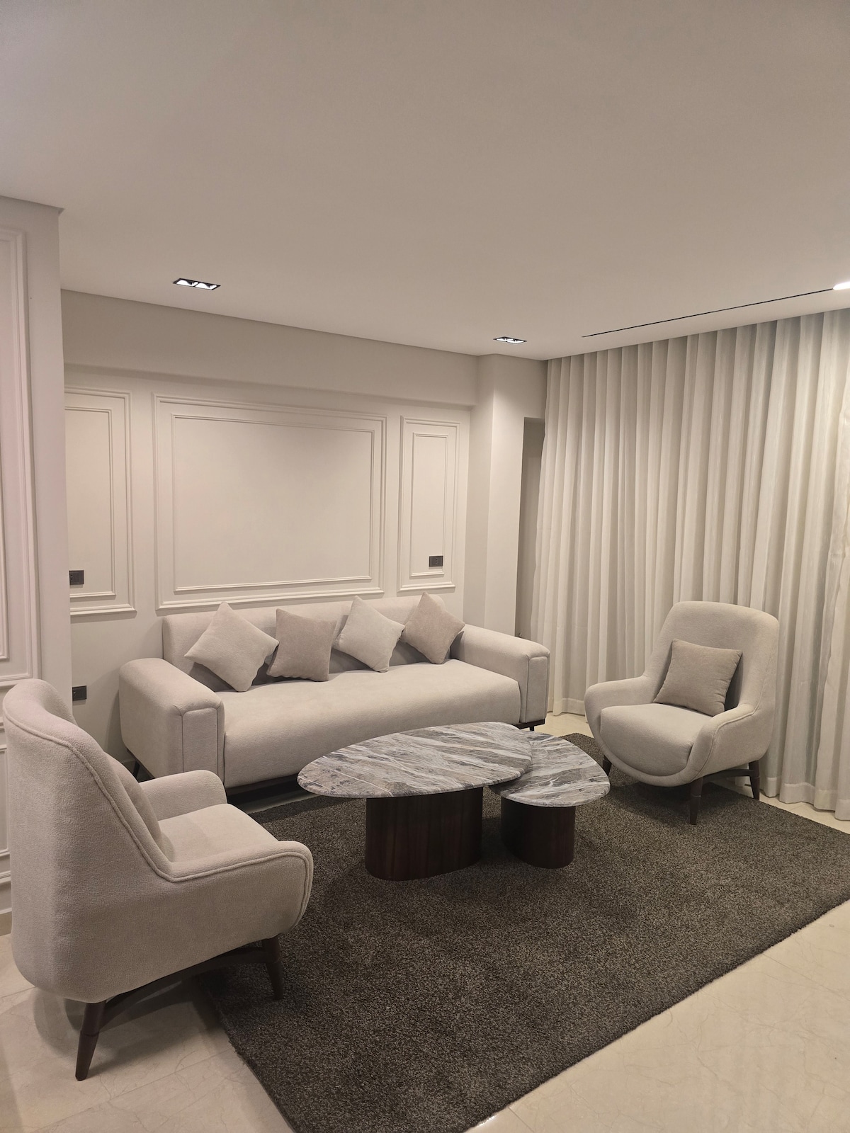 Desfrute de uma estadia no apartamento de 240m lindamente decorado, espaçoso e luxuoso na área mais segura do Egito 🏡 O apartamento está localizado em uma área estratégica e muito tranquila no Cairo Novo. Localização 📍 > 25 min do Aeroporto do Cairo e do centro da cidade > 10 min do Cairo Festival City Mall & hospitais > 7 min do Egyptian International Centro de Exposições, Centro de Conferências Al Manara e Shopping 5A Waterway > Apenas 5 minutos a pé da farmácia, supermercados, restaurantes e cafeterias!