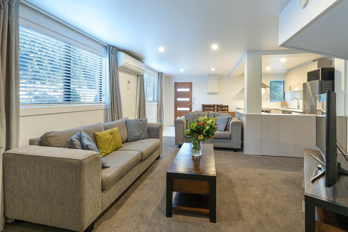 Desfrute de uma autêntica experiência Wanaka nos nossos apartamentos de férias recentemente renovados e totalmente contidos no coração da cidade. Casa contemporânea e confortável longe de casa e com localização central em Upton Street, para que possa caminhar até às lojas, restaurantes, bares e, claro, à beira do lago de Wanaka! Este apartamento faz parte de um complexo baixo com uma série de unidades, acomodando 28 pessoas no total. Para obter opções de alojamento adicionais no The Willows Wanaka, consulte os anúncios no perfil do anfitrião.