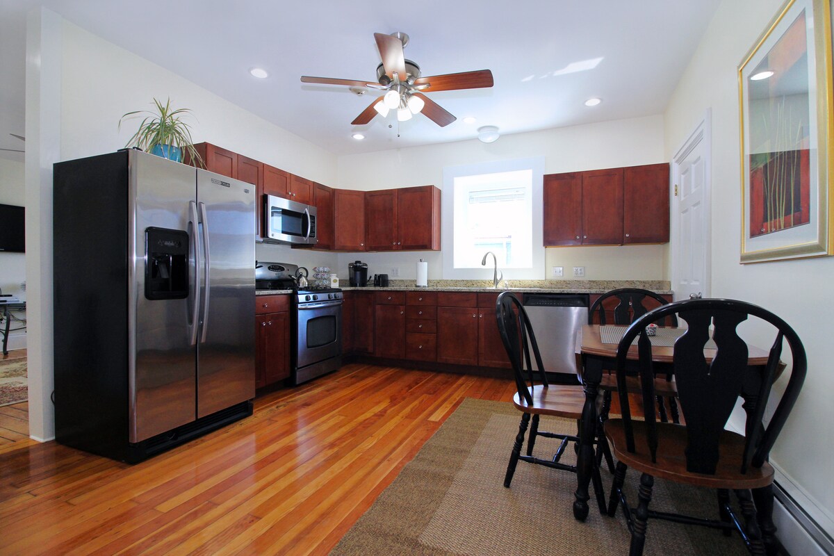 Enjoy walkability to local shops, liquor store, cafes, parks and even the harbor in just minutes. Conveniently ground-level with a private entrance, walk right into the condo's open living space with living/sleeping/and casual dining all in one. The condo offers a petite full kitchen equipped with everything you need to cook and clean up a full meal...but why would you when you can walk 5 minutes for a fresh lobster roll? Popular residential downtown location. Bring your well-behaved pet (+$100)