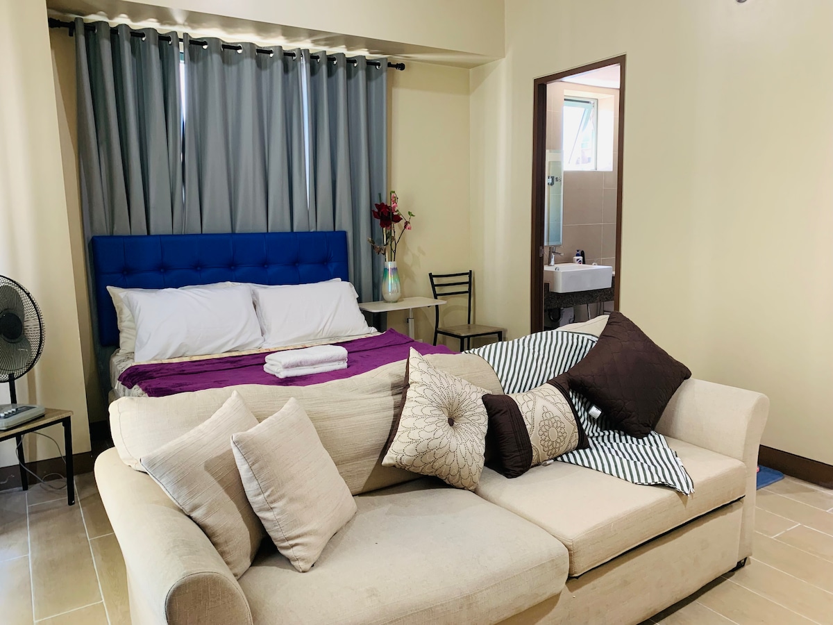 For business or holiday travelers looking for an alternative to hotel but still with a top-class hotel feel. The studio is located just across NAIA Terminal 3 and can be reached by a short walk from the airport, partly through an air-conditioned footbridge. Within short walking distance from the studio, you will find restaurants, shopping, service, casinos and bars with live music entertainment. As a guest, you'll have free access to a large outdoor pool, a 55'' Smart TV and Wi-Fi 100 Mbps.
