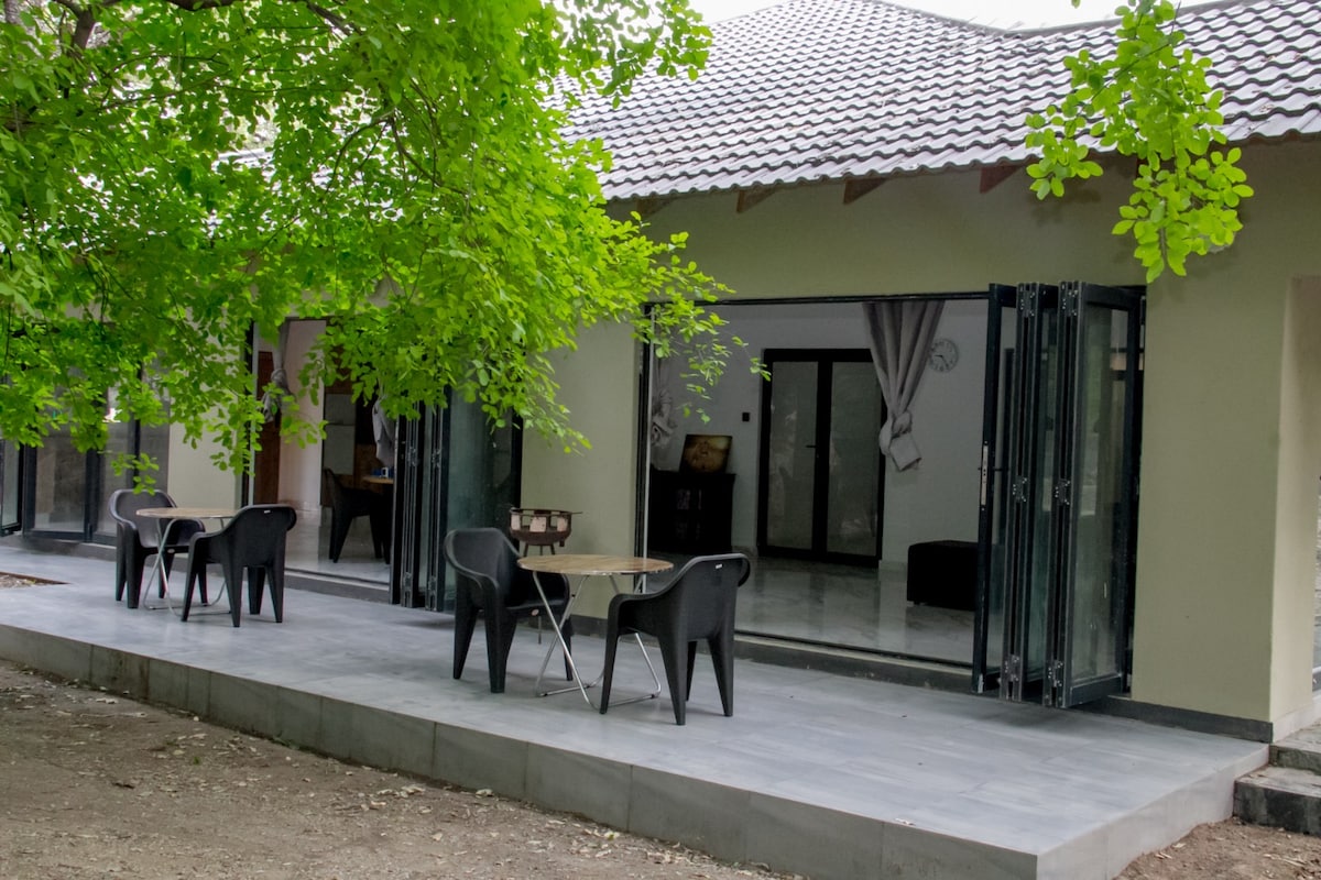 We are back from a year of travels around Europe with fresh new inspiring ideas for our Airbnb. Our house is ideal for couples and small groups of up to 6 people. The main house has 1) an ensuite bedroom w/king-size bed, corner bath, toilet & duo shower, 2) a spacious open mezzanine floor w/queen-size bed and 3) a covered verandah w/2 single beds. There is an open living room with a fully-equipped kitchen and 2nd bathroom w/toilet & shower. Good climate control w/4 aircons and 2/ceiling fans.