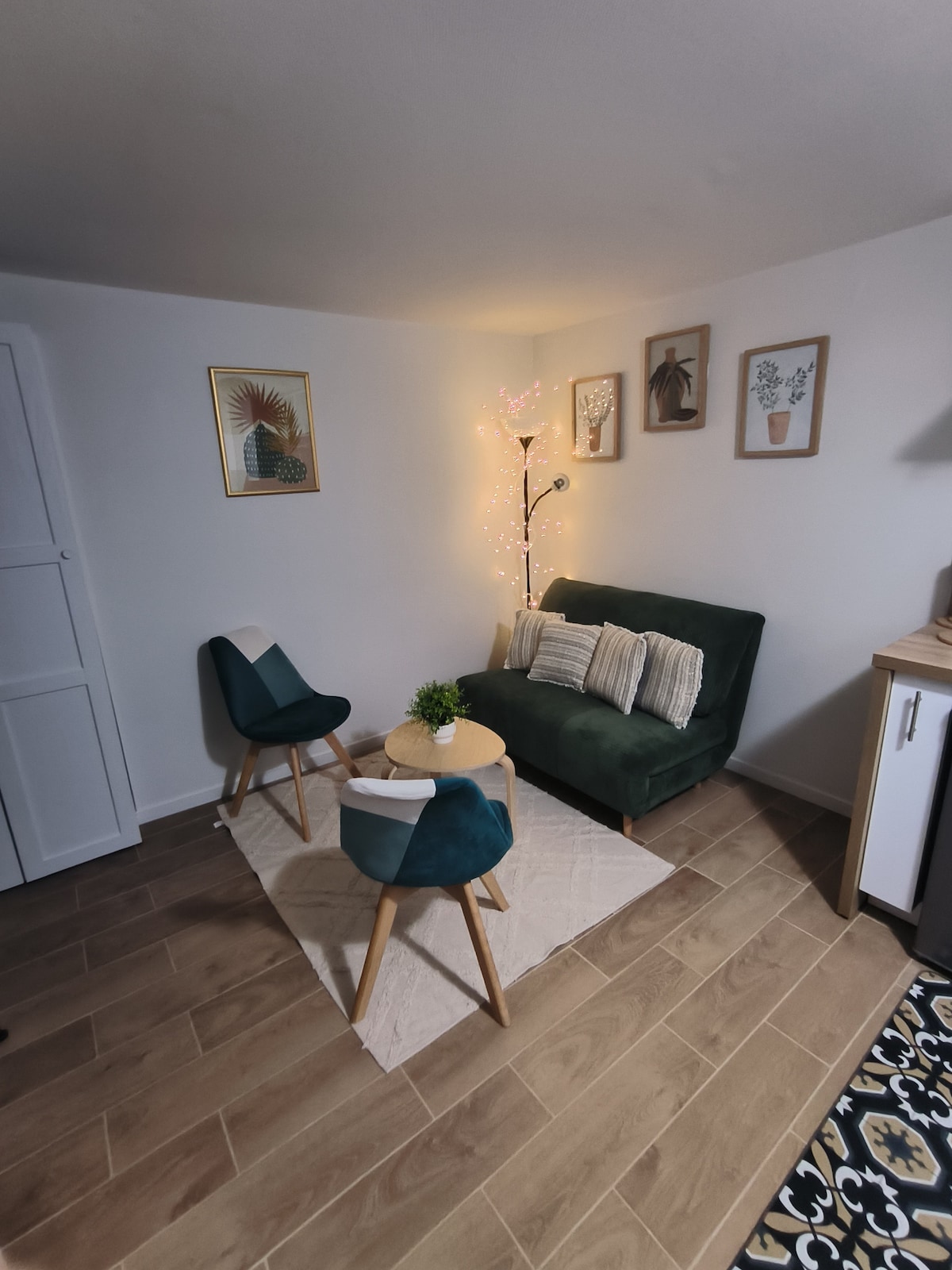 🌿 Ninho encantador no coração de Niort 🌿 Estúdio acolhedor de 20 m² com jardim privado, espreguiçadeiras e mobiliário de exterior para momentos de relaxamento. Dispõe de uma área de estar com secretária e televisão (Netflix), uma cozinha totalmente equipada, uma área de dormir separada com uma cama de 140x190, uma casa de banho moderna com chuveiro e casas de banho separadas. 🎁 Café, chá, roupa de cama, toalhas e Wi-Fi de alta velocidade incluídos. Perfeito para uma escapadela romântica, a poucos passos de lojas, restaurantes e atividades no centro da cidade!