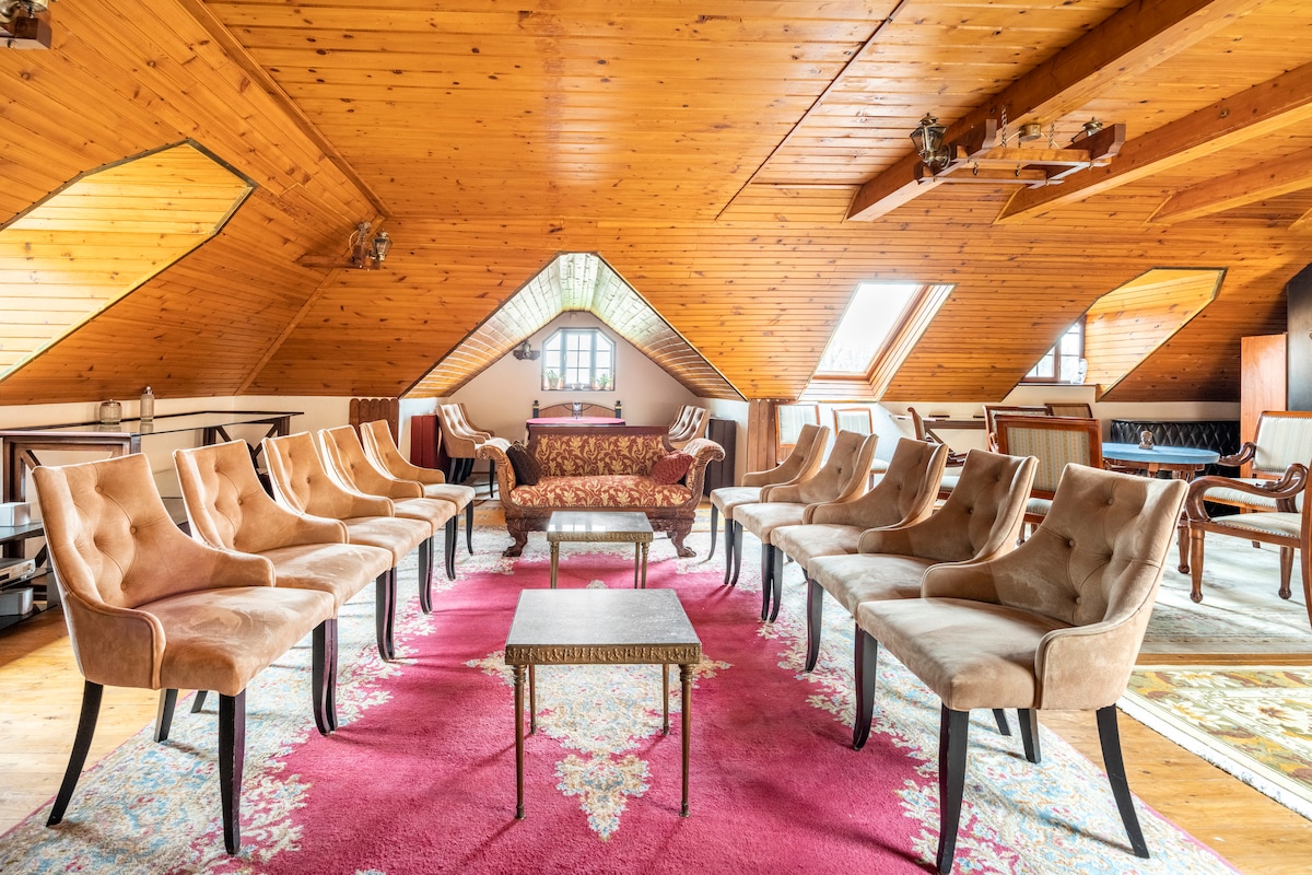 Paisagem, história e localização: Incrível vila histórica com cerca de 2 acres de parque. Em um dos pontos mais altos da propriedade está uma casa de observação que exibe uma vista espetacular da curva do Danúbio. Parte do parque é uma pequena floresta de castanheiros com uma estrada sinuosa até a colina. No final da serpentina há a casa de vigia. Um lugar perfeito para beber uma taça de vinho e desfrutar da vista. Há também uma churrasqueira aberta na parte inferior da propriedade mais perto da casa. Um lugar perfeito para cozinhar ao ar livre. Nosso lugar tem uma história rica. Interessante mencionar que John Naumann (inventor do computador) Edward Teller (inventor da bomba atômica) e alguns dos maiores físicos húngaros do século XX estavam passando muitos de seus verões como estudantes universitários na vila com os proprietários originais no início do século XX. Originalmente, na década de 1870, o edifício foi construído para uma casa de banho de caçador para a nobreza local, mas no início do século XX os proprietários fecharam a piscina e a converteram e ficou conhecida como a Mansão do Caçador. 10 anos atrás, o edifício passou por uma grande reformulação ganhando sua aparência atual. Ao lado da mansão, uma piscina de alta qualidade foi recentemente construída em 2024 com várias funções de spa. Localizado nos arredores de Budapeste, em Tahi, a apenas 25 minutos de carro do centro da cidade de Budapeste. A propriedade fica a poucos quarteirões do rio Danúbio, a 10 minutos de carro da fonte termal local. Se dirigir não for uma opção, a estação de ônibus fica a apenas 5-10 minutos a pé, o que leva você ao centro da cidade de Budapeste ou a outros locais ao redor. Também podemos fornecer serviço de carro e guia turístico, se necessário. Deve visitar na área, Budapeste, Visegrad Cassle, cidade histórica de Szentendre, cidade histórica de Esztergom. O turismo de Tahitotfalu (Tahi) é conhecido por passeios a cavalo, caça, caminhadas e estradas de bicicleta. As trilhas de bicicleta ficam a poucos minutos de distância, onde você pode explorar o rio Danúbio. Serviço de transporte de porta a porta do aeroporto também oferecido a partir do aeroporto. 5 quartos no nível superior da casa estão disponíveis para aluguel. 2 quartos têm camas king size. Um dos quartos com a cama king size tem duas camas de solteiro extras também. Dois outros quartos têm camas de solteiro - 2 de cada. Um quarto tem 4 camas. Também convertemos a sala de informática em uma área de dormir para uma pessoa, fazendo uma 6ª sala separada com cortinas do saguão. Do longo hall de entrada também há uma entrada para a sauna e outra entrada para um mictório. Uma extremidade do saguão se abre para a parte superior de um átrio fechado acima da entrada privativa. Dois banheiros separados se abrem a partir do saguão do átrio superior. Cada banheiro está equipado com chuveiros, pequenas pias e um vaso sanitário. Eles estão disponíveis para os nossos hóspedes usarem como banheiros privativos. A partir deste átrio superior atrás das grossas portas de madeira deslizantes, há escadas para levá-lo até o nível inferior (em caso de emergência) e mais escadas para levá-lo até o piso térreo para o jardim. Do jardim você tem acesso a 2 outros banheiros, um com chuveiro. (Caso em um dia quente você queira tomar banho perto do jardim ou enquanto estiver no jardim use os banheiros, você não precisa entrar no edifício. Pedimos que você use sua entrada privativa para o edifício! Você pode entrar pelo nível do jardim ou pelo terraço superior. Se você entrar no nível do jardim, você vai caminhar através de um hall de entrada para a sala de jantar principal. Você passará por 2 banheiros; uma sala de lavar louça; uma cozinha e depois entrará na sala de jantar principal. Se você entrar pelo terraço, entrará em um grande salão superior de madeira. Do salão superior abre uma escada em espiral até a sala de jantar principal, anteriormente chamada de "Sala dos Cavaleiros". Este quarto de grande porte está mobiliado com móveis dos séculos 18 e 19 e também há uma lareira rústica muito grande localizada lá. Nesta sala há uma grande mesa com 14 cadeiras e outra grande mesa com 10 lugares acomodando os hóspedes da casa durante a hora da refeição. Esta é a nossa sala de jantar formal. O café da manhã é servido aqui (se você fizer arranjos para isso). Também podemos providenciar um pianista ou até mesmo uma banda cigana ou um cantor para entretê-lo em certas noites enquanto você estiver hospedado na vila. Proprietário flexível e amigável, nosso objetivo é tornar sua estadia uma ótima experiência. Local: A propriedade está localizada em um dos subúrbios da cidade de Budapeste chamado Tahi e oferece um excelente acesso a Budapeste de carro e ônibus.