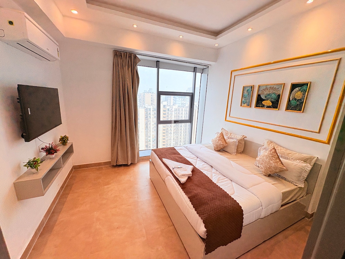 ★ Spacious bedroom with a comfortable queen-size bed ★ Air conditioning with high-speed Wi-Fi ★ Smart TV with OTT access ★ Fully equipped kitchen with fridge, induction & utensils ★ Clean and modern bathroom with geyser ★ 24×7 security in a gated community ★ Lift, parking, and power backup available