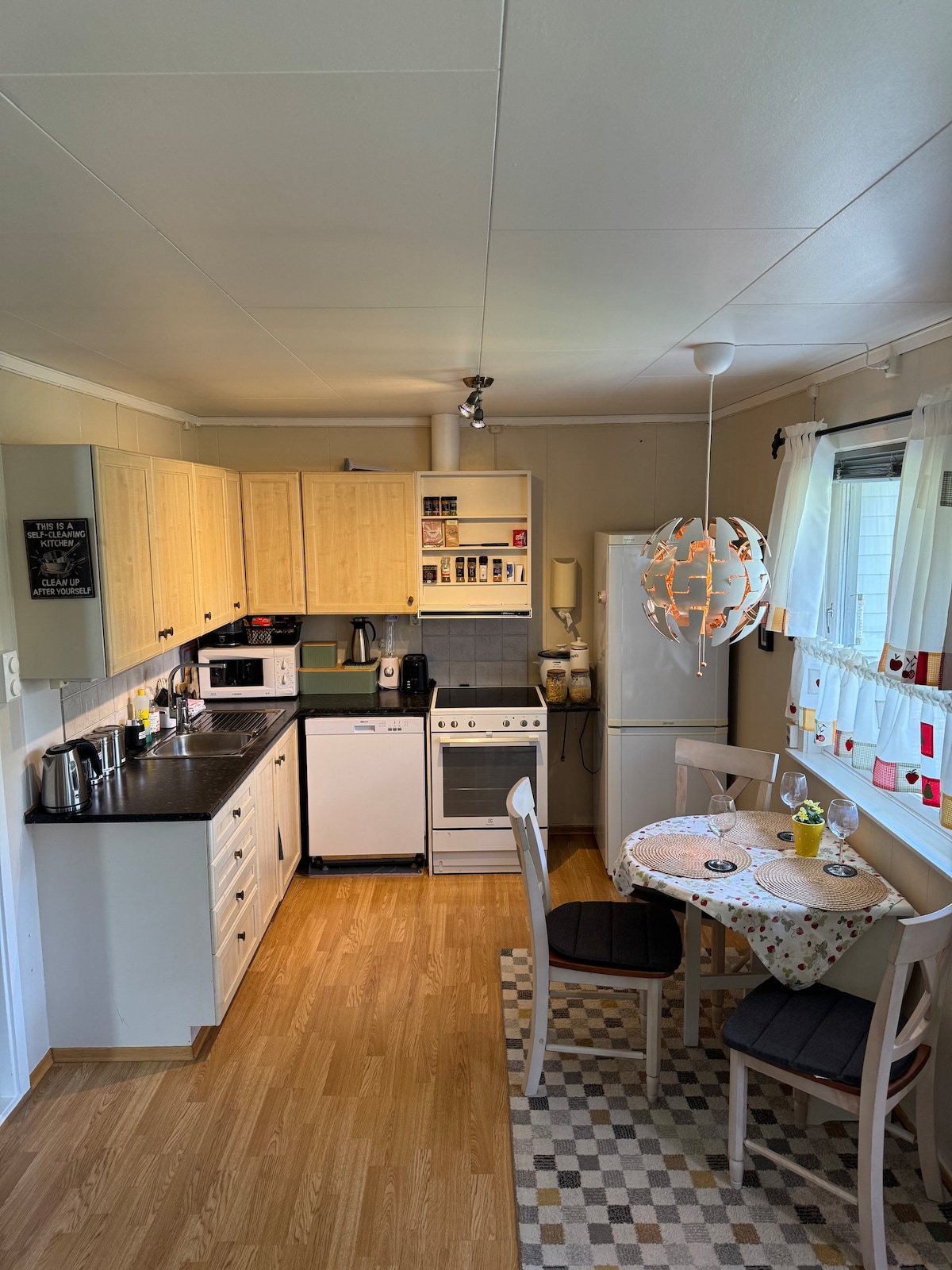 Bem-vindo à nossa encantadora casa de campo, construída no estilo clássico de Lofoten, inspirada nas casas de madeira tradicionais do norte da Noruega. Aqui tem uma combinação perfeita de charme costeiro rústico e conforto moderno, ideal como base para experiências na natureza, diversão em família ou apenas relaxamento total num ambiente bonito. A cabana tem 3 quartos e muito espaço para 6 adultos. Além disso, há uma cama de viagem para crianças pequenas e um sofá-cama que é adequado para crianças ou adolescentes.
