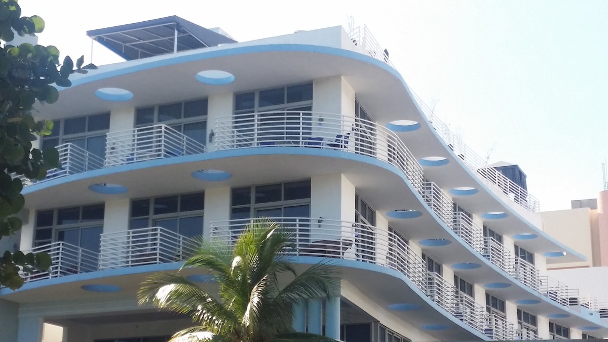 Viva o sonho de South Beach neste loft luminoso de 2 andares a poucos passos da areia e da icónica Ocean Drive. Acomoda 4 pessoas com uma cama queen, sofá-cama e cozinha totalmente equipada. Desfrute de uma decoração arrojada, tetos altos e localização imbatível perto de bares, lojas e pérolas Art Deco. Perfeito para casais, amigos ou viajantes solitários à procura de sol, estilo e diversão no coração de Miami Beach! DEVE TER MAIS DE 21 ANOS PARA RESERVAR
