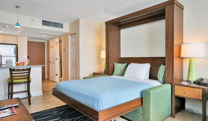 O estúdio tem uma cama Murphy queen-size, uma cadeira convertível em cama para uma criança, casa de banho e uma cozinha totalmente equipada, com frigorífico, micro-ondas e cafeteira. As nossas unidades padrão de um quarto acomodam confortavelmente até 2 adultos e 1 criança. O lugar de estacionamento está disponível no local. Check-in depois das 15:00 Saída 10:00 Proibido fumar Este tipo de suíte certamente proporcionará férias memoráveis na praia da Flórida!