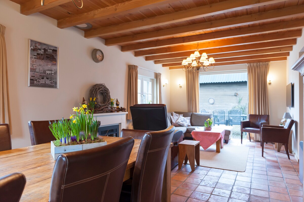 Casa de férias luxuosamente mobiliada com todo o conforto, feita em uma jaqueta histórica. 4 quartos, 2 banheiros e um lindo terraço privativo diretamente adjacente aos prados a cavalo. "De Oude Stal" e "De Woelige Stal" são duas casas de férias separadas para 4 pessoas, cada uma que pode ser ligada por uma grande parede deslizante a uma casa grande: "De Oude Woelige Stal" para 8 pessoas.