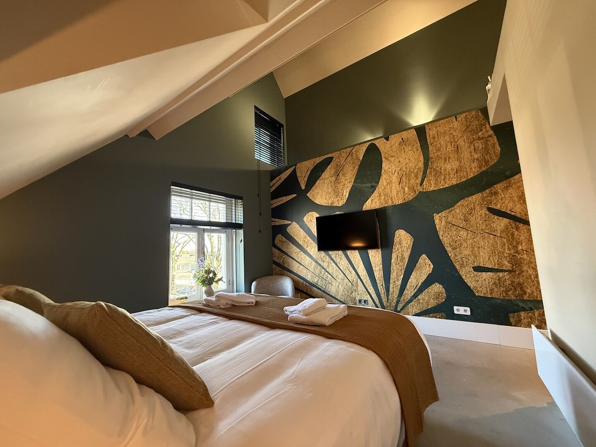 Fique numa elegante casa de hóspedes renovada de 50 m² em Valkenswaard — antigamente estábulos de cavalos, agora um retiro moderno e acolhedor completo com a sua própria sauna finlandesa privada. Desfrute de uma cama king-size, jardim privado, área de lounge/ginásio e estacionamento privado gratuito. Os trilhos intermináveis da floresta ficam do outro lado da rua e os restaurantes, bares e lojas ficam ao virar da esquina. Eindhoven fica a apenas 20 minutos de distância.
