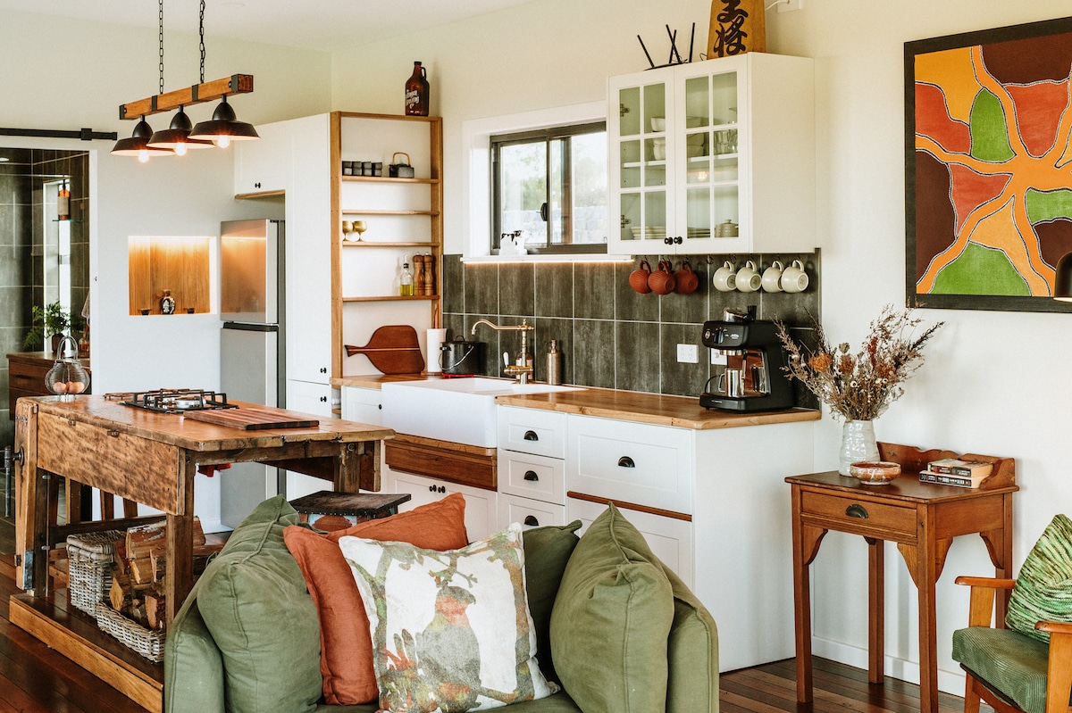 Rainbow Creek foi curado para amantes e aventureiros. Aninhado à beira da floresta tropical em Kalang, está imerso na natureza - canto dos pássaros, vermes brilhantes e um milhão de estrelas à noite. Desfrute de espaços luxuosamente confortáveis para descansar ou seja criativo na biblioteca com materiais de arte ou leia os nossos livros de natureza e arte na biblioteca. Estamos longe o suficiente de Bellingen para sentir que realmente escapou, mas perto o suficiente para sair para um jantar romântico ou um pequeno-almoço descontraído e café pela manhã.