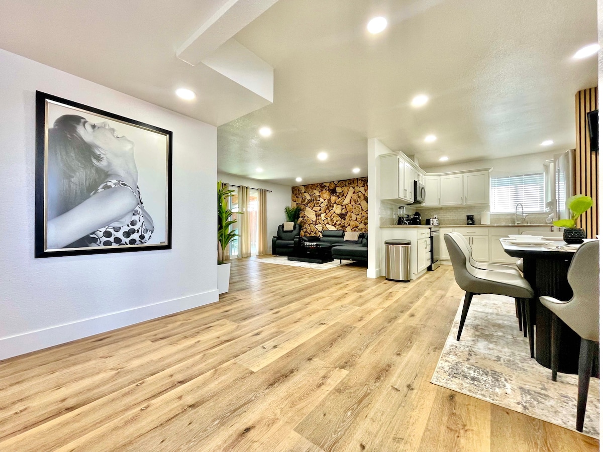 Divirta-se com toda a família neste espaço elegante totalmente remodelado que foi concebido para manter a experiência dos hóspedes em mente. ★ Ambos os quartos têm camas king-size e ambos os sofás-cama abrem-se como camas queen com colchões de espuma de memória. ★ Fogueira★ lindamente paisagística para o tempo em família ★ Pátio Jantar e grelha Espaço ★ de secretária a trabalhar Wi-Fi ★ de 300 MBPS. ☞ 3.3 Miles to Downtown/Freemont St Experience ☞ 3,6 milhas até ao Container Park ☞ 4.4 Miles to Arts District ☞ 5,1 milhas até Stratosphere and Strip