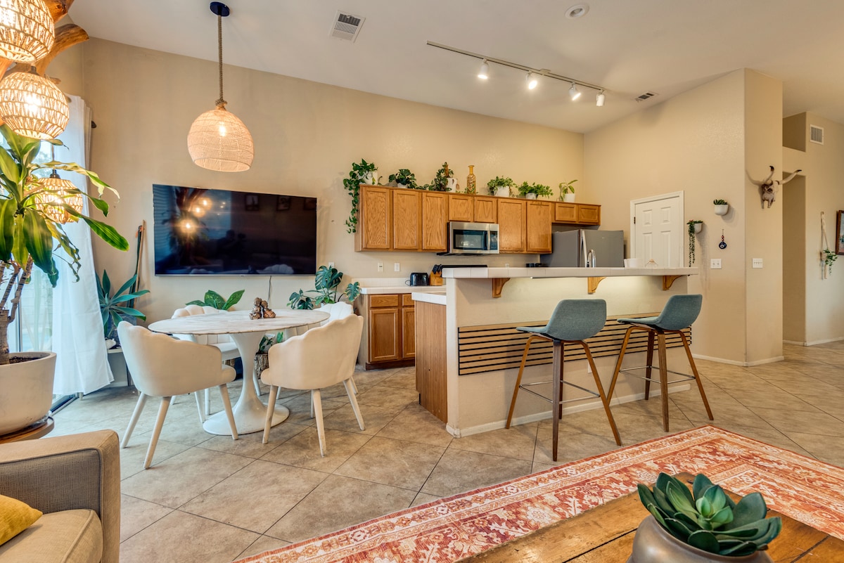 Fique perto de tudo: do centro da cidade, da Strip, do Cashman Center, do Speedway, do Red Rock e do Mt. Charleston! Esta moderna casa de um andar com 1300 pés quadrados oferece uma cozinha totalmente abastecida, smart TVs com mais de 80 canais de streaming, Wi-Fi rápido e um relaxante retiro no quintal. Ideal para grupos, famílias, casais ou hóspedes individuais que desejam uma escapadela acolhedora e conveniente em Vegas.