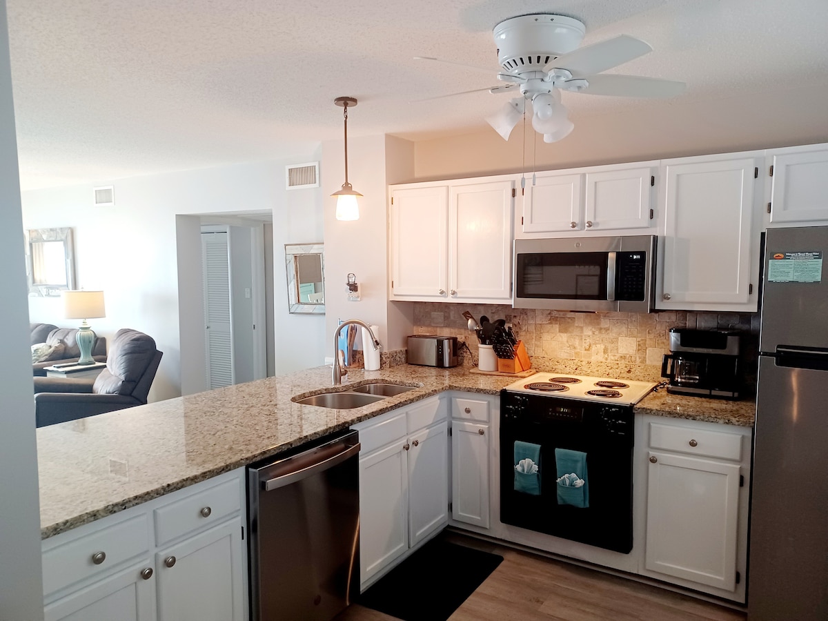 Bem-vindo ao Opa 's Ocean Oasis!! Estamos entusiasmados por experimentar as vistas deslumbrantes de Villa Capriani, a bela praia e as comodidades luxuosas do tipo resort. O nosso apartamento recém-remodelado, com 2 quartos/2 casas de banho, foi concebido para a escapadela familiar perfeita. Camas King, Queen + Beliche com as melhores avaliações. Cozinha totalmente abastecida, mesa de jogos retro com 400 jogos; cadeira de massagem de corpo inteiro; Roku Smart TV em todos os quartos! Desfrute de vistas incríveis para o mar e para o pátio a partir da nossa varanda privada coberta. Banheiras de hidromassagem durante todo o ano, piscinas de abril a outubro
