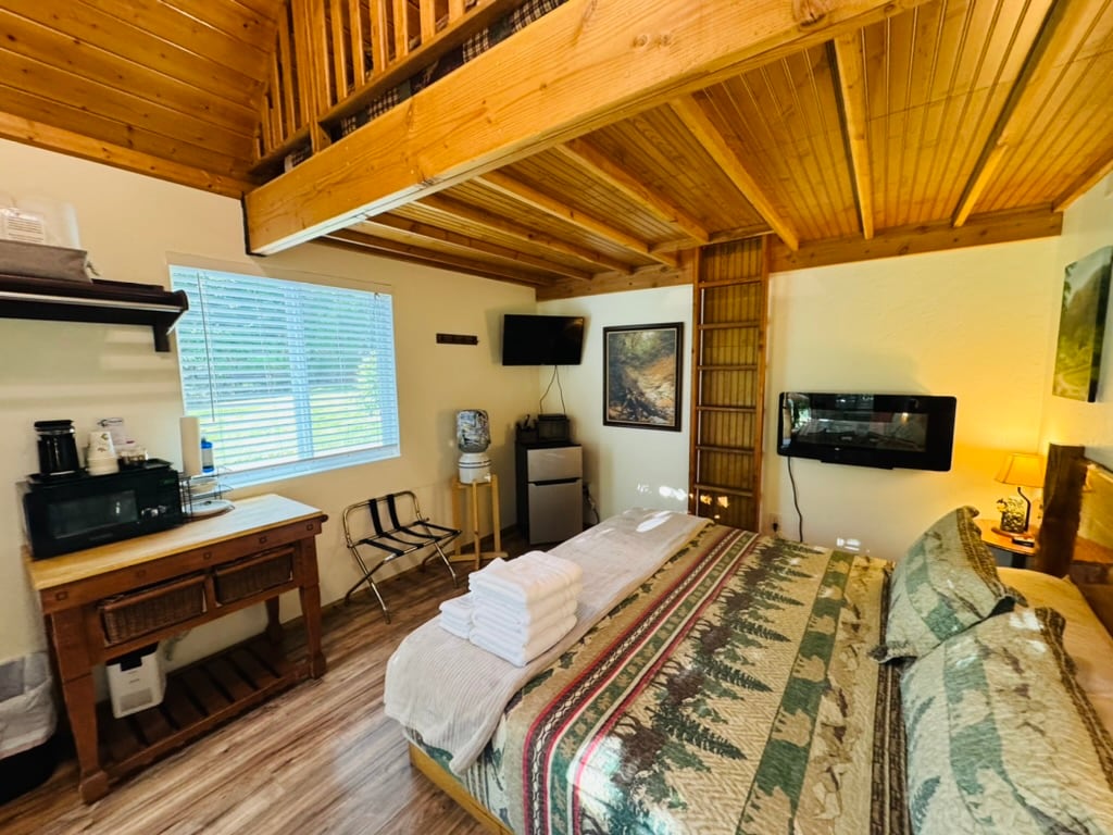 Welcome to The Bliss, a charming studio-style guesthouse, designed for relaxation, comfort, and a little bit of magic. Tucked quietly behind our home, this private retreat offers the perfect blend of rustic character and chic style—just two blocks from downtown. Whether you’re here for a weekend escape, wine tasting, or a peaceful reset. The Bliss is a place where guests instantly feel spoiled, relaxed, and well cared for. Waterfalls, (1 hr)Crater lake (90 min)Wildlife safari (10 min)