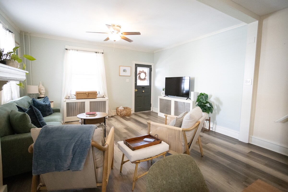 Enjoy a peaceful stay in this newly renovated, semi-attached private guest apartment, located just outside Philadelphia in charming Ambler, PA. This cozy, family-friendly space features two comfortable bedrooms, one full bathroom, a welcoming living room, a dining area, and a fully equipped kitchen. Conveniently situated within walking distance to a grocery store and a nearby shopping plaza with boutique shops and local charm.