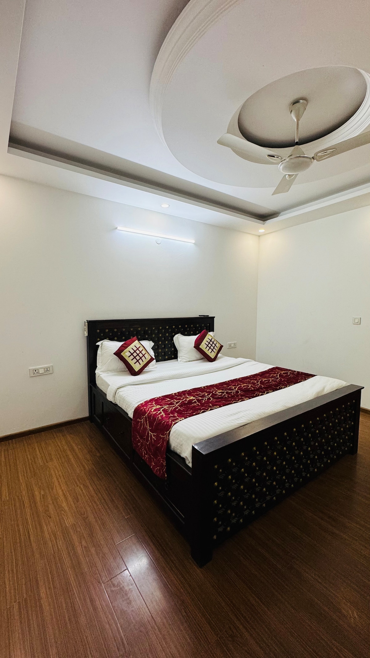 Trazemos-lhe um novo conceito de Suite de luxo com um tubo de hidromassagem no conforto do seu quarto. O quarto tem ACs, aquecedores, armário e água quente Spatub para dar-lhe uma experiência de 12 meses. Com a televisão por cima da banheira, pode esperar ver um filme, combinar ou ouvir música ou simplesmente relaxar. É um 1BHK privado com 1 quarto, 1 banheira, 2 varandas, cozinha funcional e sala de estar com sofá-cama (para 3 hóspedes) no primeiro andar no bloco GK-1 M. O edifício tem elevador e reservado 1 Estacionamento