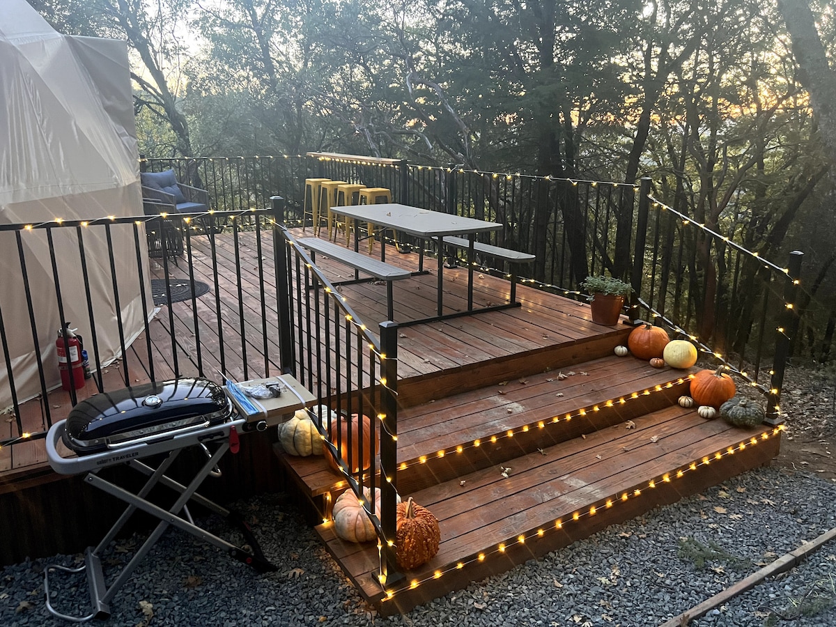 Experimente a natureza no conforto numa cúpula de glamping com um chuveiro exterior, cozinha exterior e jantar ao ar livre. Por favor, leia toda a descrição da propriedade antes de reservar. A propriedade fica numa floresta de sequoias com um prado de bom tamanho para sol e flores. É um excelente ponto de partida para explorar as belas praias, a floresta de Redwood e as cidades locais de Trinidad e Arcata. Máximo de 3 hóspedes, ou 4 hóspedes se um ou mais hóspedes tiverem menos de 12 anos.