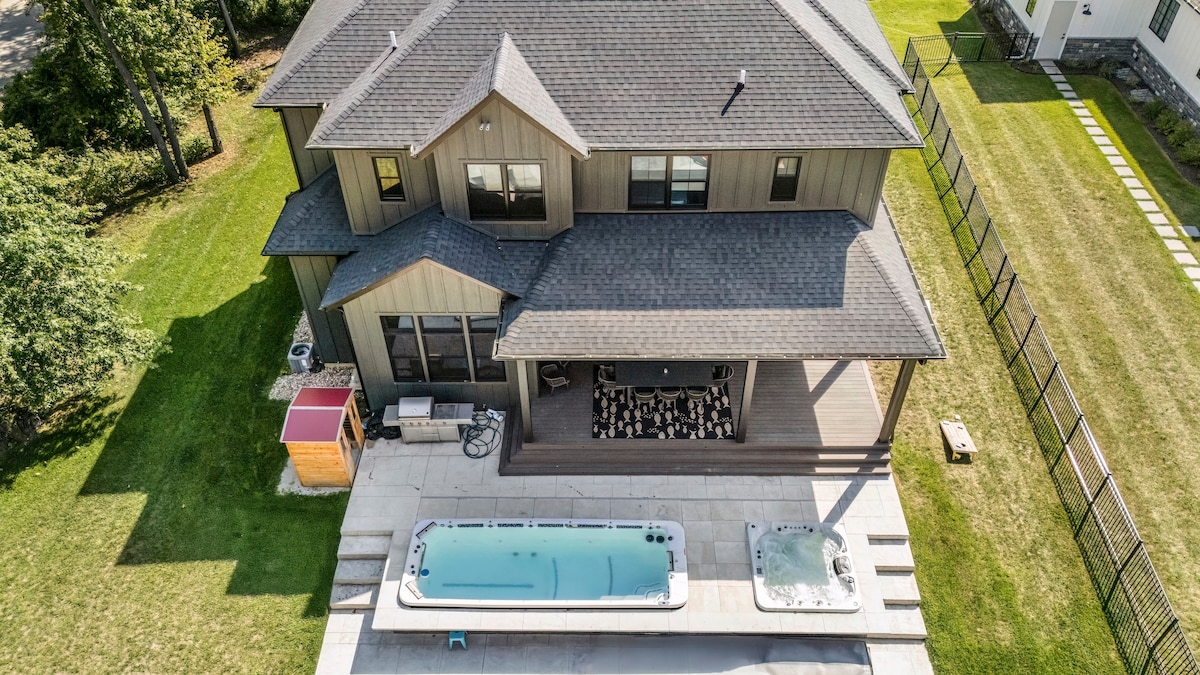 Fogueira estilo acampamento🔥 personalizado 🏖️ 1,5 milhas até ao Lago Michigan 🌞 A praia precisa de estar incluída Lote arborizado🌲 sereno de 2,5 acres Banheira de hidromassagem♨️ durante todo o ano 🧖♀️ Sauna Garagem para jogos🏓 aquecida Mesa de jogos🎮 Xbox e Infinity 🍷 Perto do Lakeshore Wine Trail 🍺 Várias cervejarias nas proximidades Sala de estar☀️ tranquila 📺 2 smart TVs, incluindo uma televisão de 75" ☕️ Keurig Duo com cápsulas gratuitas. 🧑🍳 Cozinha totalmente abastecida Internet ⚡️ de alta velocidade Berço 👶 portátil e cadeira alta 📍Perto de Grand Mere, Silver Beach, Weko B