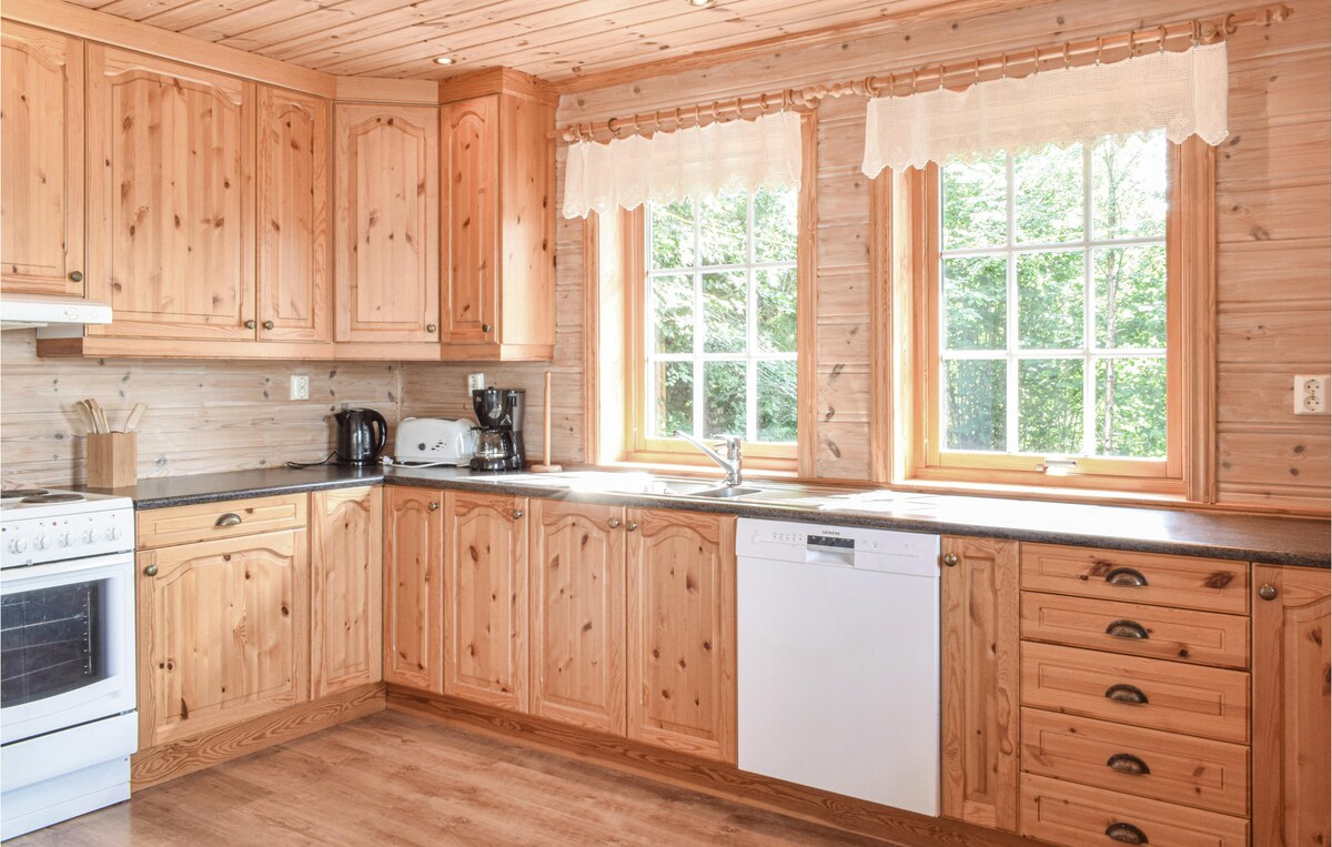 Unique and recently renovated barn apartment with a party venue consisting of a large kitchen, plus a table and chairs seating up to 16 people. The apartment contains two bedrooms, one bathroom, a hall and a large living room with kitchen (65 m2). Most of the floor is tiled with heating cables, and all the appliances are modern. You can wash out of the apartment yourself or order a laundry. The laundry costs 1000 NOK when ordering. Bed linens cost 75 kr per piece to rent, no sleeping bags.