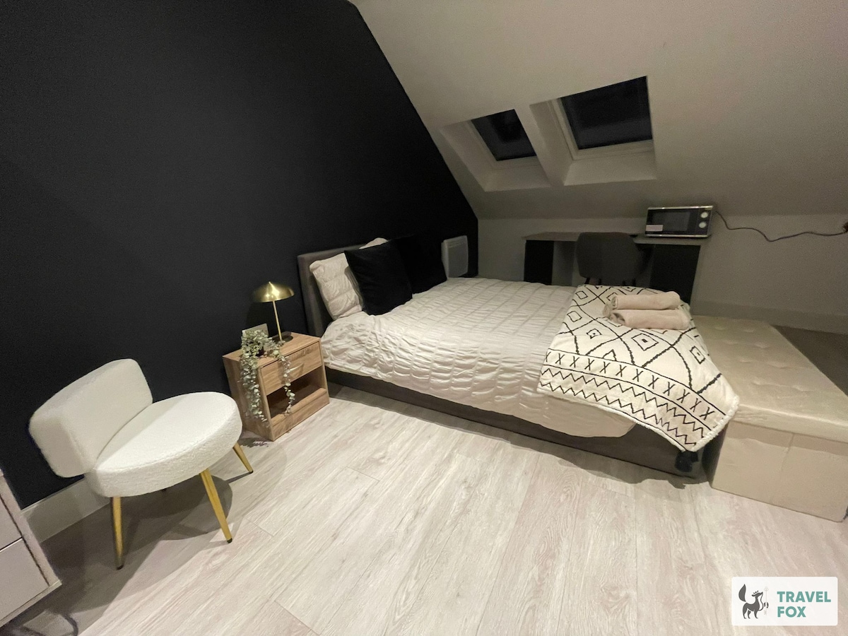 Seja nosso hóspede e desfrute de todo este apartamento. Uma localização no centro da cidade, grandes acomodações situadas em dois níveis. Perfeito para casais que desejam relaxar neste apartamento bem concebido, que dispõe de ar condicionado, banheira de hidromassagem ampla, acesso Wi-Fi gratuito e terraço no telhado do centro da cidade. Um espaço luxuoso e situado no coração do centro da cidade de Loughborough, permitindo fácil acesso a todas as lojas, restaurantes e bares. A sua localização central também permite um fácil acesso à estação ferroviária, às rotas de autocarro e à universidade.