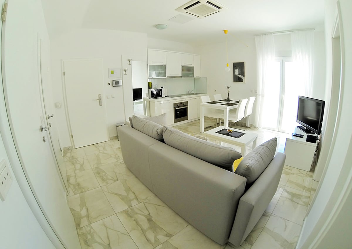 Este complexo de apartamentos único oferece um apartamento exclusivo de 4 estrelas de dois quartos no rés-do-chão com: - restaurante com especialidades locais e refeições tradicionais, - Piscina exterior, - Sauna, - Centro de fitness, - área de massagem, - grande zona de churrasco, - parque infantil - praia arenosa e de seixos, - zona de estacionamento e muito mais. Experimente o verdadeiro significado das férias de verão, escape da agitação da cidade e deixe-nos mimá-lo com o conforto do nosso apartamento, praia no local e paisagem deslumbrante.