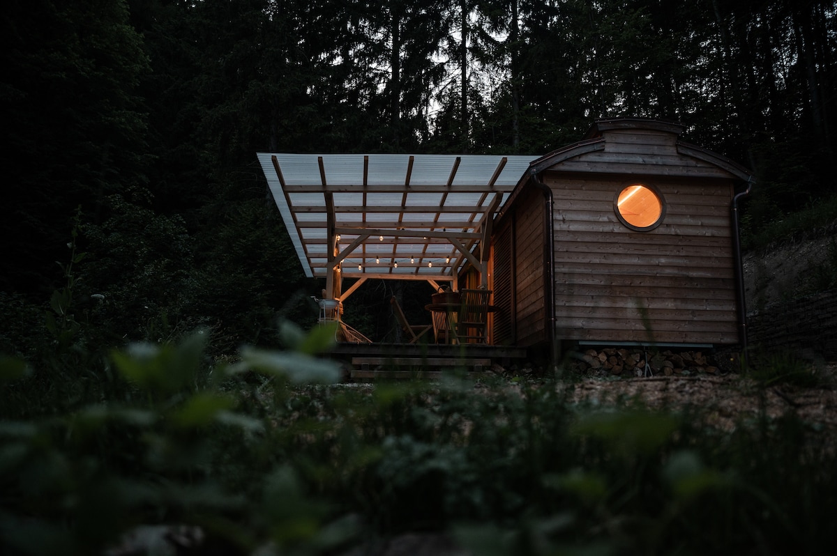 Postavené vlastnými rukami od základov až po ručne vyrobený nábytok interiéru. Upravené okolie domčeka pre Vaše pohodlie: terasa s lehátkami a vaničkami na kúpanie v lete, kaďa s vyhrievanou vodou na jarné a jesenné dni, vonkajšie posedenie na čiastočne krytej terase vedľa malého rybníka, priestor na grilovanie či opekanie. A všade navôkol vysadená zeleň. Záležalo mi na tom, aby hostia zažili kvalitu a komfort na pohľad aj na vlastnej koži.