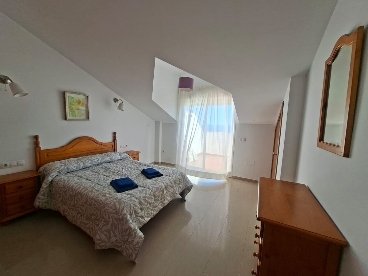 Esta casa respira tranquilidade: relaxe com toda a família! Duplex de 2 quartos com cama de casal, cama extra e sofá cama. Sala de estar espaçosa com muita luz, cozinha completa! 2 casas de banho, terraço, solário, a 200 metros da praia e piscina para crianças na mesma rua! Wi-Fi de alta velocidade Não são permitidos animais de estimação Sem festas ou despedidas. Espaço sem fumo Supermercados Próximos Ar condicionado e ventiladores nos quartos Paragens de autocarro