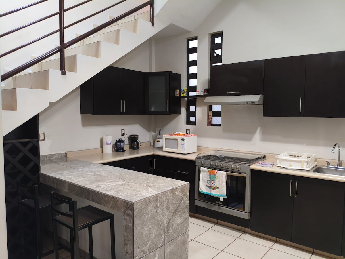 Desconecte as suas preocupações neste espaço espaçoso e tranquilo que tem as comodidades necessárias para passar umas férias fabulosas! A casa tem uma sala de estar, sala de jantar, cozinha, 4 quartos (1 no rés-do-chão), 2 casas de banho completas, lavandaria e garagem para um carro. Estamos localizados a 15 minutos de carro do centro histórico e a Soriana a 4 quarteirões de distância.