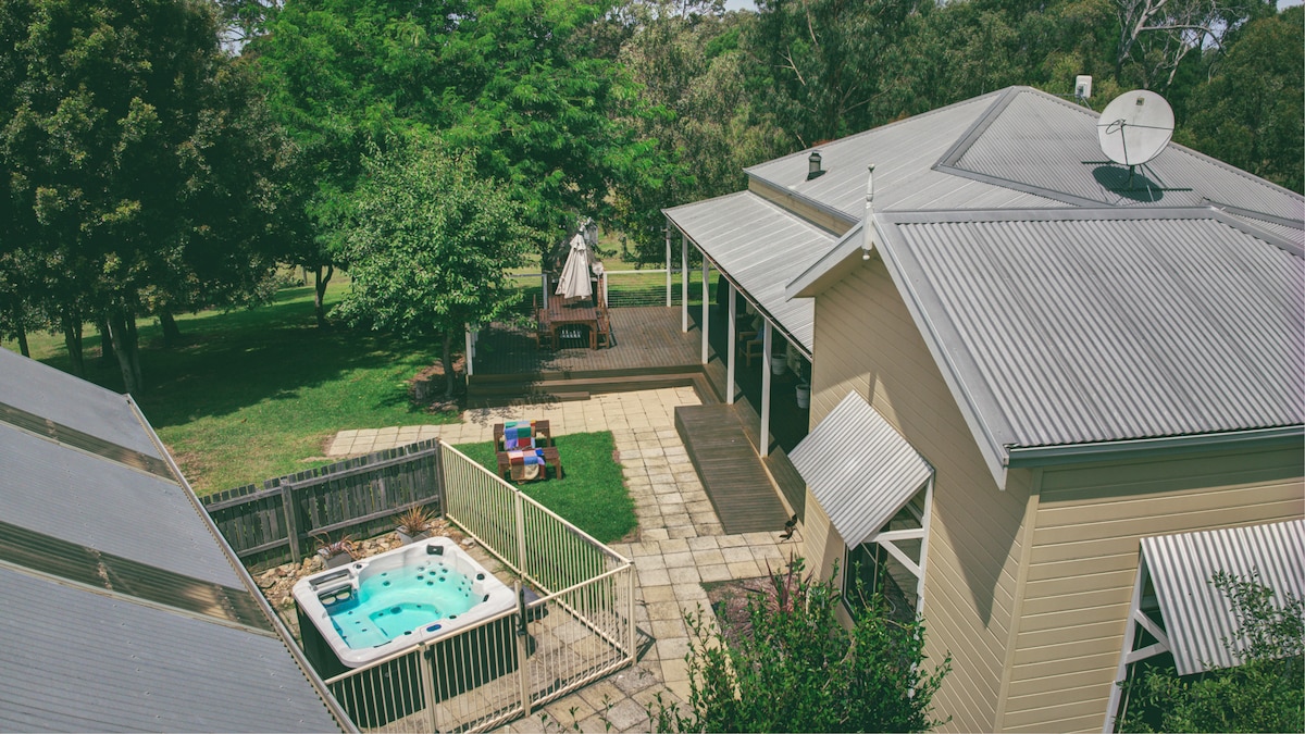 Nossa propriedade tranquila é uma unidade pitoresca e independente que está separada da casa principal e tem vista para o mato. Observe que alteramos recentemente as nossas regras da casa e, por razões de segurança e adequação, não aceitamos mais reservas com crianças. Também não podemos acomodar animais de estimação. Observe que a conexão Wi-Fi é ruim dentro da unidade, mas ok no convés coberto. Não é permitido o carregamento de veículos elétricos, mas há duas estações na cidade que podemos levá-lo também se estivermos disponíveis.