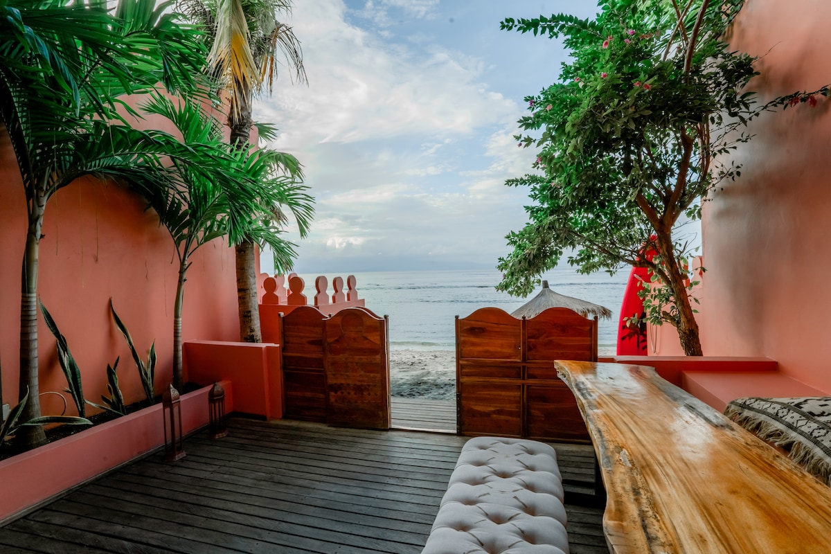 Katara by the Sea is a one of a kind villa on the Island of Nusa Lembongan. This beautiful waterfront villa is steps from the ocean with breathtaking views of Bali and Mt Agung. Katara is the perfect retreat for a couple. It is literally a love shack! Baby! Built /Designed by owner from Hawaii as a quiet oasis with access to snorkeling, diving, surfing , fishing. It includes a private sports bar with Cocktails, Billiards, Corn Hole etc. at your disposal. Also 24hr management when needed.