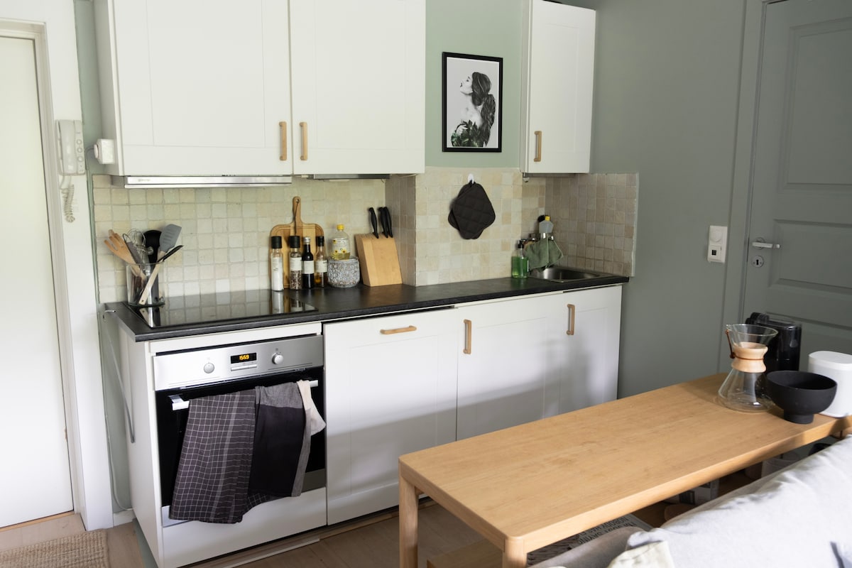 Apartamento moderno com entrada privativa em uma área residencial tranquila no meio de Oslo. Seu apartamento tem uma sala de estar/cozinha combinada, quarto separado e banheiro. Todas as comodidades de casa (internet, TV a cabo, máquina de lavar/secar, secador de cabelo, cafeteira, etc.)! Dois minutos a pé do ônibus #34 ou 5 minutos do Metro (Tåsen) para o centro de Oslo e Estação Central; ônibus do aeroporto (FB3) a 5 minutos a pé. Temos uma bicicleta da cidade disponível para sua conveniência.