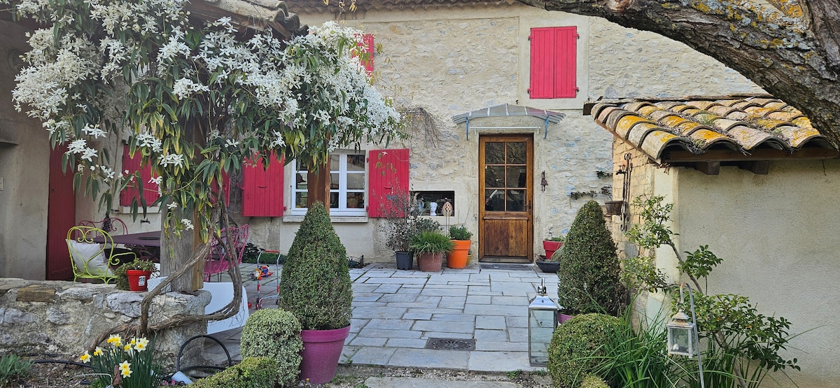 Charmant mazet de 45m2 exposé plein Sud dans une oliveraie biologique de 10 hectares Climatisation Jardin privé fleuri Piscine chauffée du 15/04 au 30/09, à partager avec maximum 6 hôtes Terrasse privée ombragée aménagée Parking Village et commerces à 1,5km / 20 minutes de marche