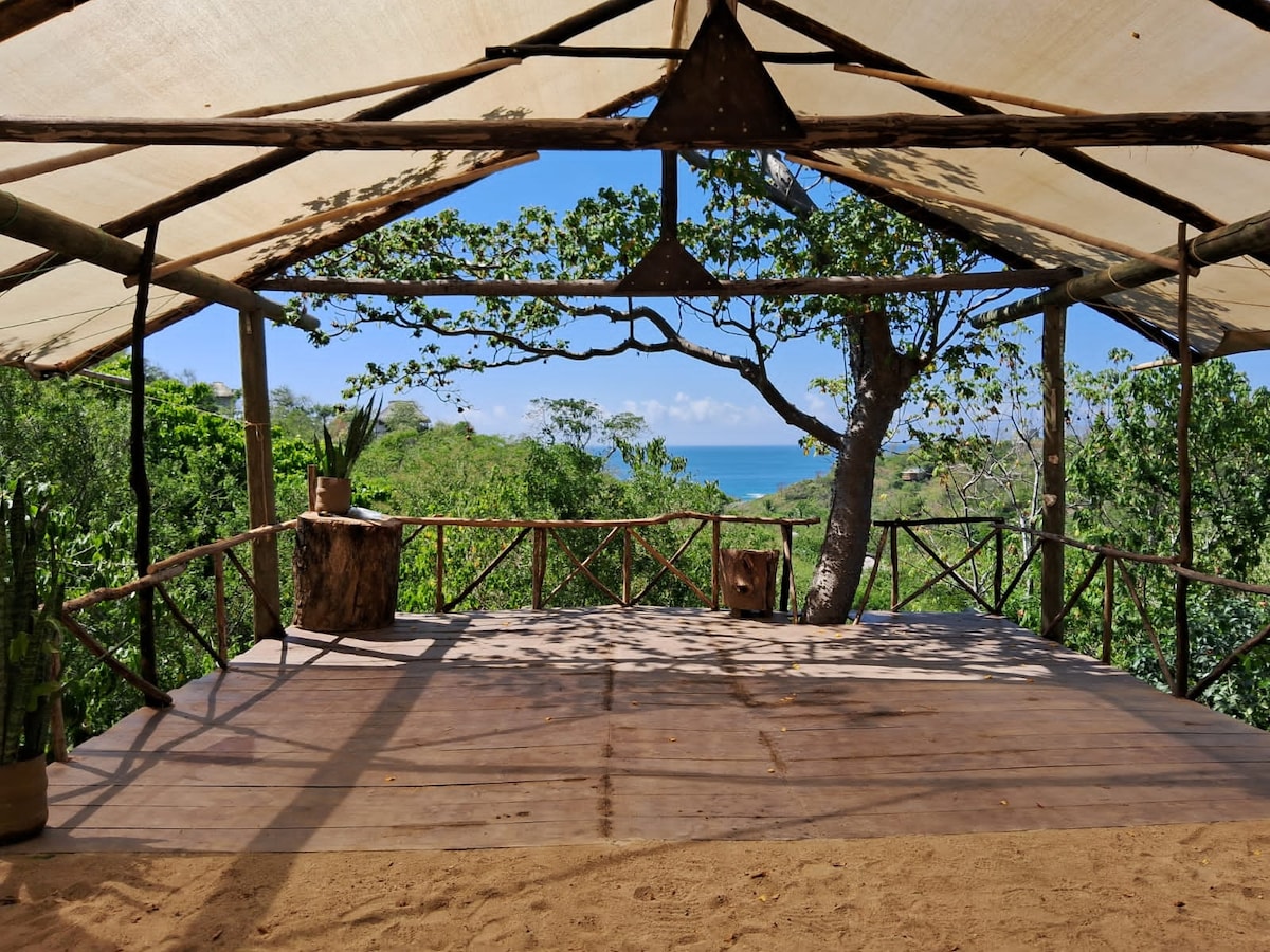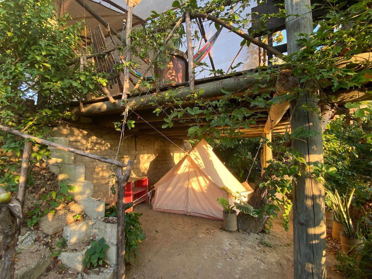 Tent with a comfortable mattress included(bed mattress inside) on top of a beautiful wood pile-dwelling in the most centric location, 300 meters from the beach restaurants in the center of Mazunte, with all commodities, clean sheets, pillows, towels, high-speed great internet, shared kitchen, coffee included, coworking space, light, electricity, bathroom, showers and a modern security safe box, located in a stunning micro-climate surrounded by nature.