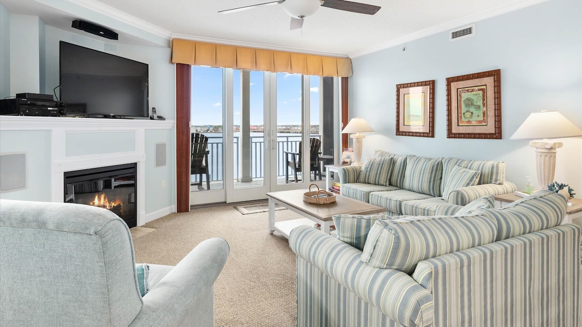 Condomínio 🌅 espaçoso de 3 quartos e 3 casas de banho à beira-mar a apenas 2 quarteirões da praia e do passeio marítimo! Desfrute de vistas espetaculares para a baía a partir da sua varanda privada e vistas panorâmicas a partir da doca no local atrás do restaurante à beira-mar. Acomoda 10 a 12 pessoas confortavelmente com atualizações modernas, estacionamento fechado e acesso imbatível às principais atrações de Ocean City: lojas, passeios e restaurantes nas proximidades. Perfeito para famílias ou amigos que procuram relaxar e voltar a interagir.