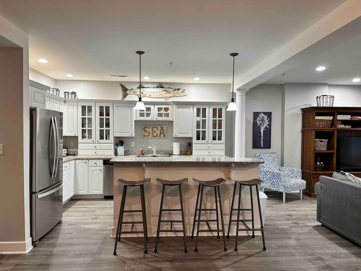 Você vai adorar a conveniência da nossa localização! A uma curta distância a pé da praia, baía, cais de pesca, lojas, inúmeros restaurantes e Northside Park, onde você poderá ouvir entretenimento ao vivo. A sala de estar aberta e a área da cozinha oferecem um ótimo espaço de reunião para que todos possam assistir TV, comer e jogar jogos. Três quartos e uma sala com um futon que se estende para uma cama de tamanho completo. Desfrute de uma refeição no pátio, relaxe na lagoa de peixes de carpas ou caminhe até o final da rua até a piscina!