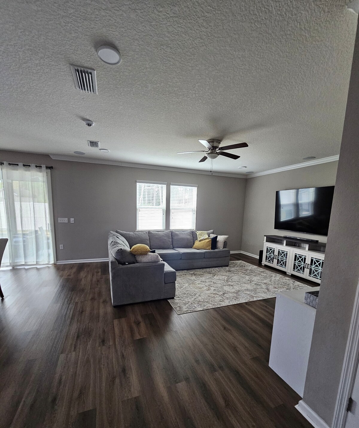 The house was built in 2023, with 4 bedrooms, 2 baths, full kitchen, living/dining room and laundry. There’s a 6 car parking lot + a 2 car garage. Trailers and RVs are welcome (driveway is 60ft long). The back of the house has a fully fenced backyard with a fire pit and grill. In total, 8 people could fit comfortably, though up to 9. If you're staying over the duration of 28 days and would like something added, please let me know. I'll do my best to accommodate all my guests!