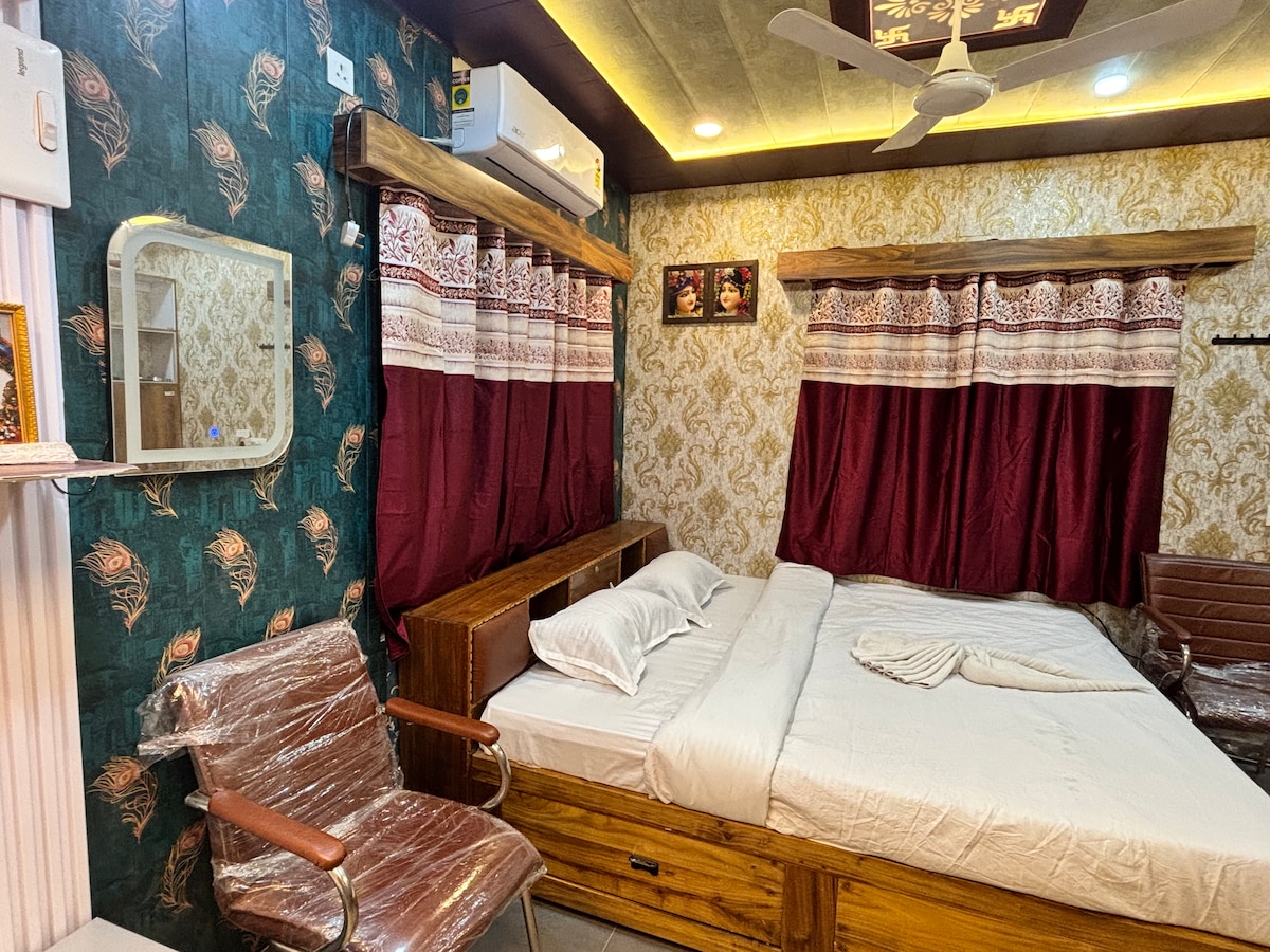 Fully furnished spacious 1-bedroom (530 sq ft) located at Laxmi Nivas, Chakratirtha road, Puri. Centrally located : 1min walk to the beach & 10 mins ride to Shree Jagannath Temple. Room on 1st floor - no lift Perfect for couples,friends or a family of 3. Kitchen(breakfast, tea, reheating food),Wi-fi,AC,1 full sized bed & single bed, geyser, balcony,dining table. Power backup available. Parking - subject to availability.Need to inform beforehand. Bike/Car rentals available nea