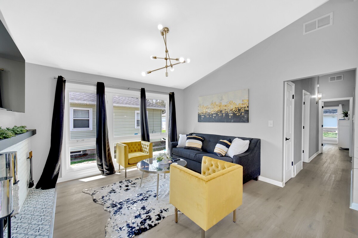 Esta bela casa está localizada perto do Lago Michigan, no noroeste de Indiana, a menos de 10 minutos da via expressa e da rodovia. Há uma cozinha de aço inoxidável, banheiro de spa, porão acabado e bar com capacidade de dormir para acomodar duas famílias. Esta é uma casa inteligente com Ring db, luzes e termostato controlados pela sua voz. Estamos a menos de uma hora de carro do centro de Chicago, e há muitas ótimas praias nas proximidades. Compras e ótimas opções gastronômicas também estão a uma curta distância de carro.